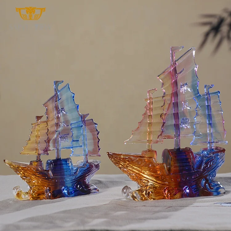 Home Craft Accessory Liuli Crystal Fengshui Decorative Blessing Dragon Boat Craft Good Luck Ornaments Factory
