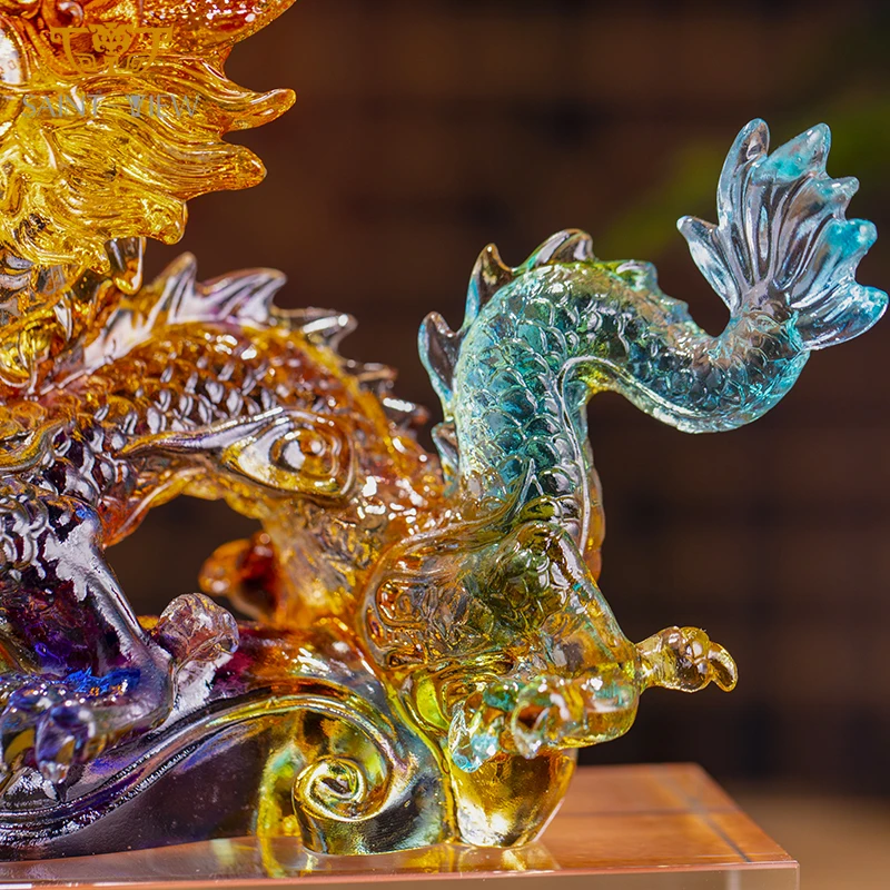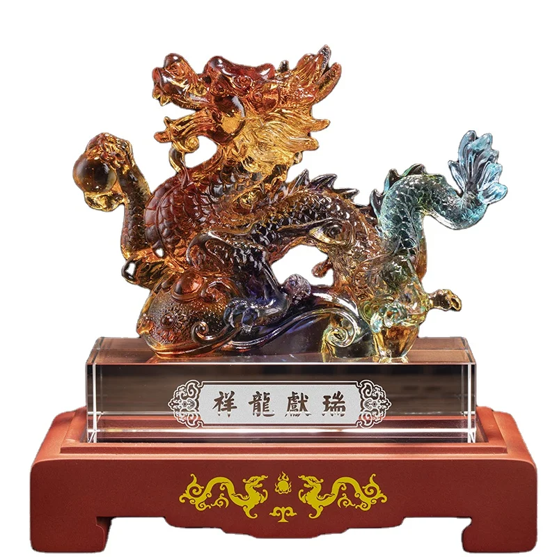 2026 Years Souvenir Chinese Dragon Company Business Gift Interior Fengshui Office Decoration With Wooden Base