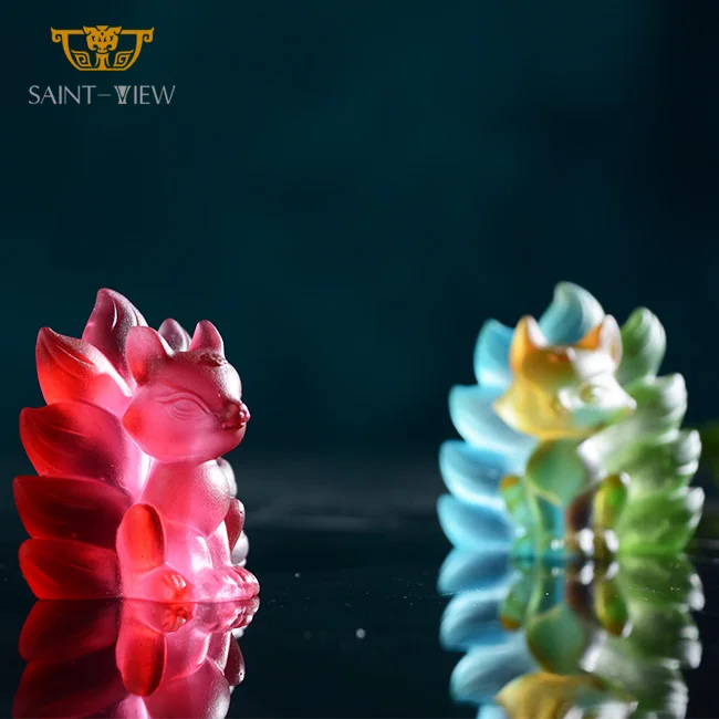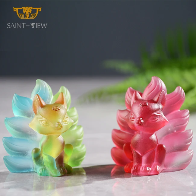 Custom Mini Gift Desk Decor Nine-tailed Fox Crystal Animals Ornaments Crystal Sculpture