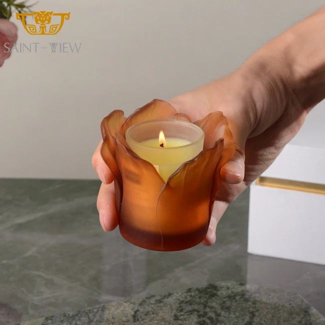 Handmade Tulip Flower Dec Casting Crystal Glass Scented Candal Melting Pot Candleholder Party Giveaways