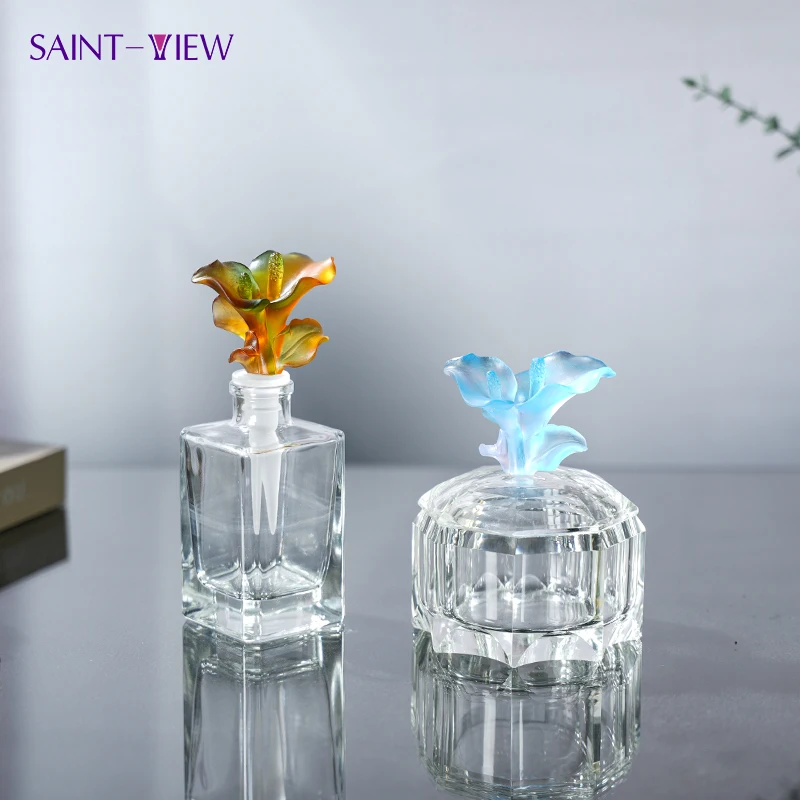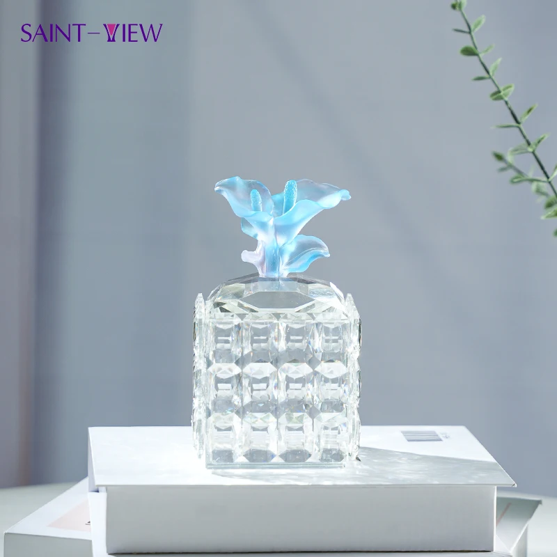 Crystal Compote Bowl with Colored Dome Lid Home Decor Glass Fruit Dessert Candy Jar Painted Flower Theme Wedding Decoration Gift