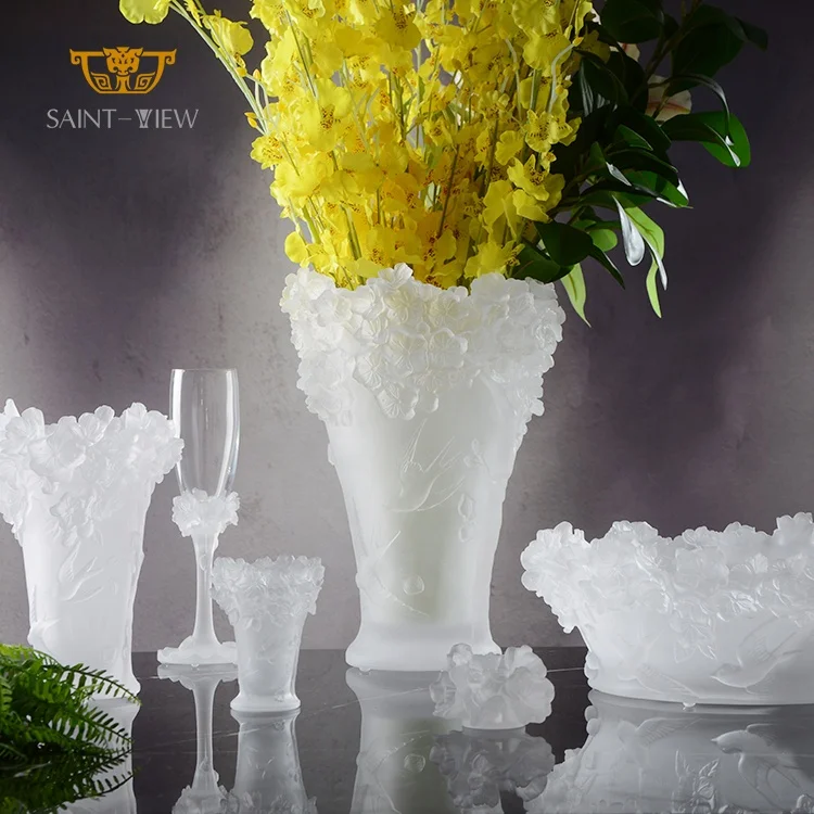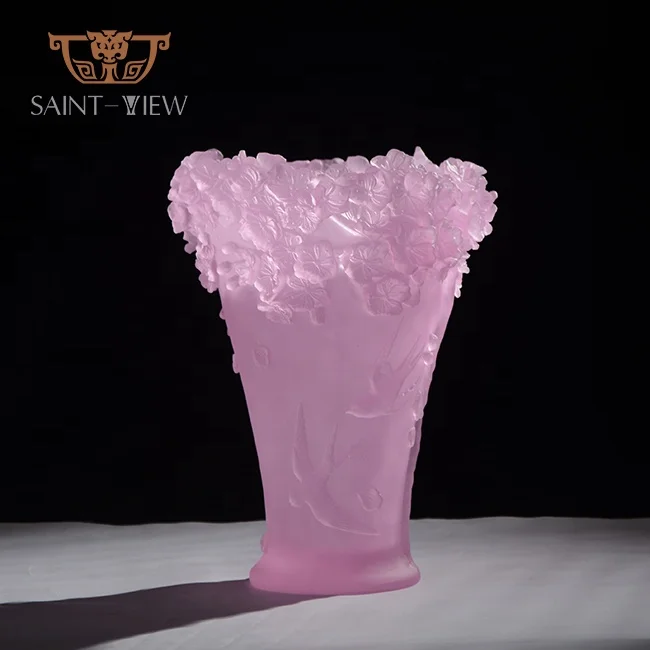 Pate De Verre Crystal Glass H30cm Hotel Restaurant Reception Sakura Flower Ramadan Decorations Wedding Centrepiece Vase