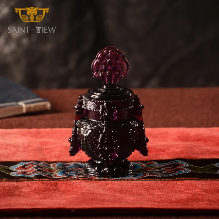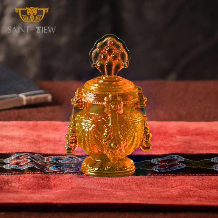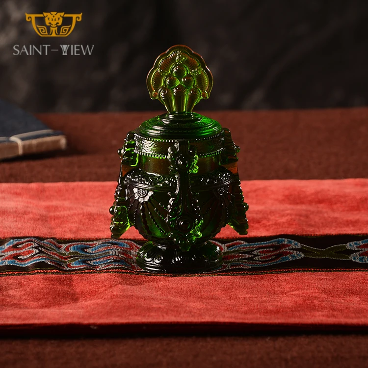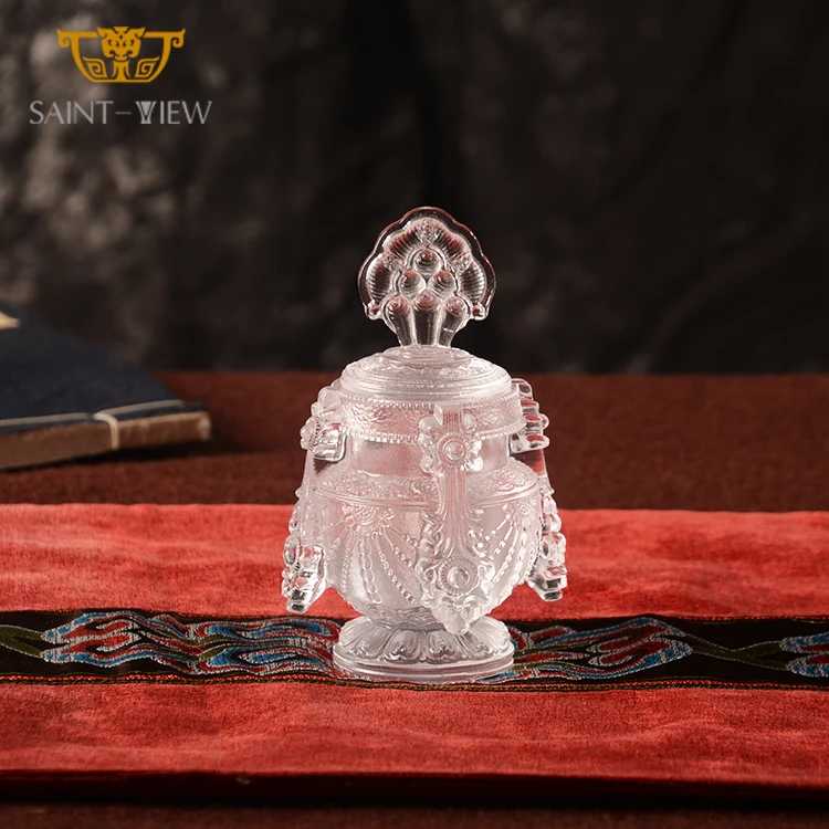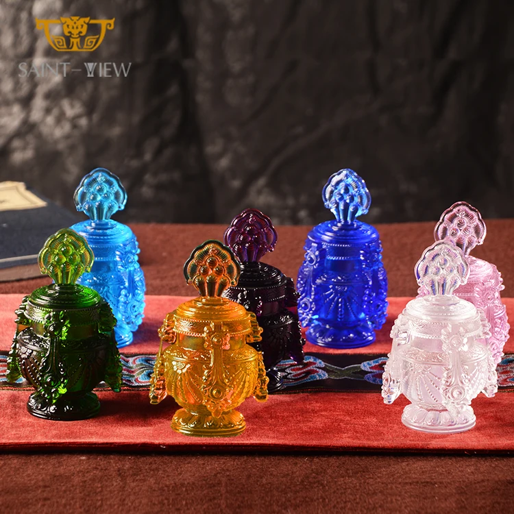 Buddhism Liuli With Brass Lid & Saucer Auspicious Craft Holy Water Cup
