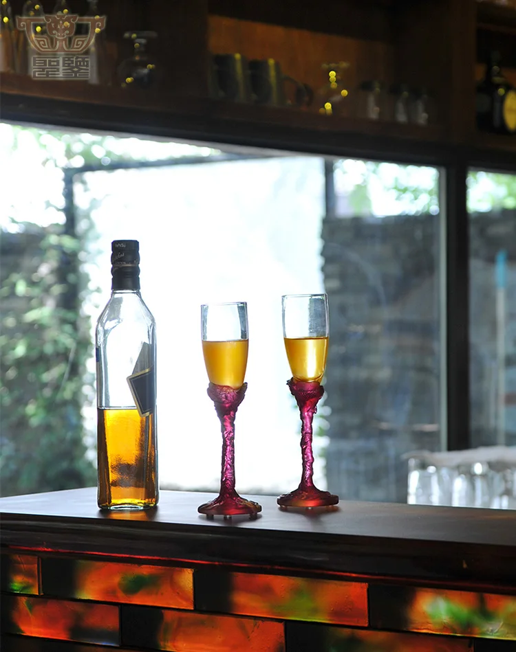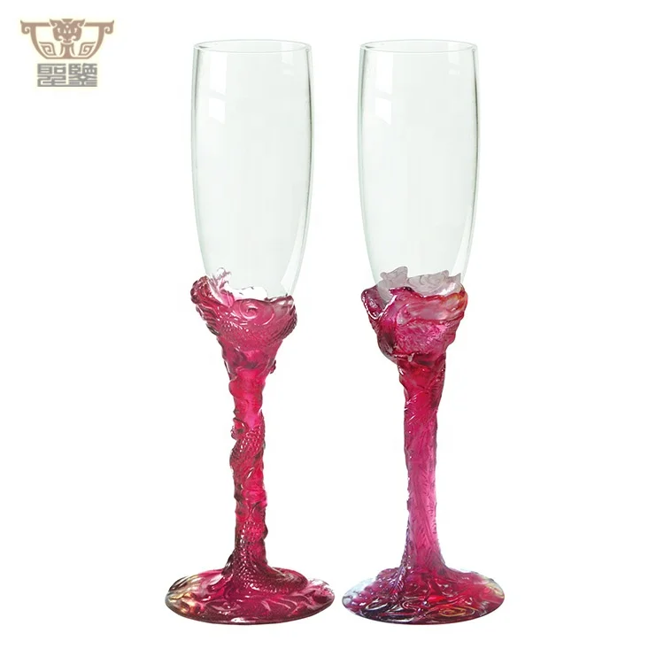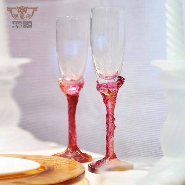Colored Glass Goblet Dragon Phoenix Champagne Wine Champagne Glasses Cup Couple Wedding Crystal