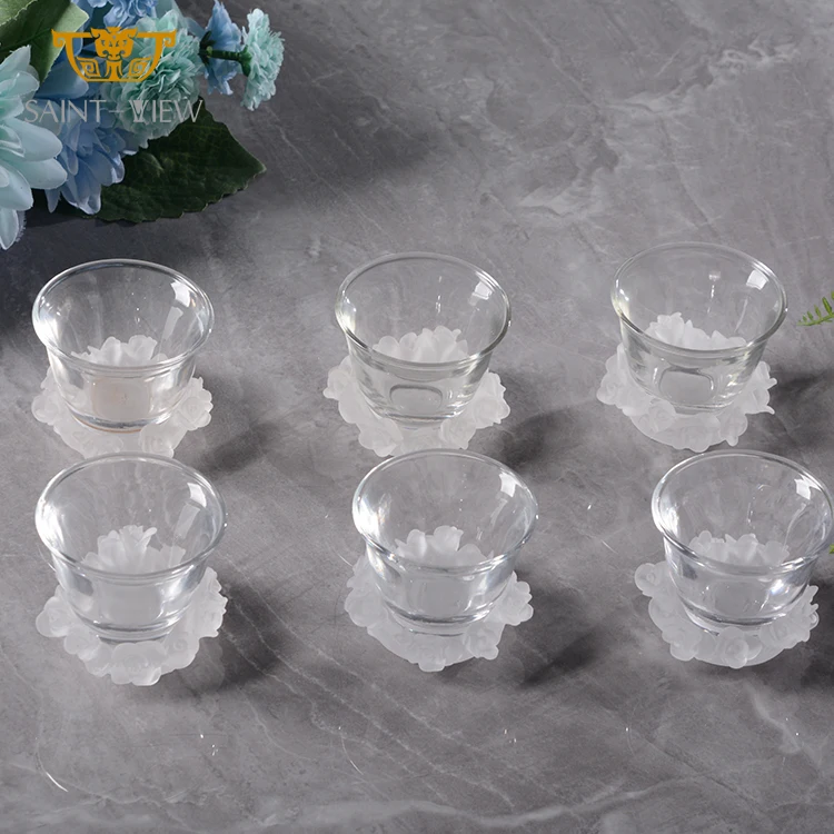 Cawa Drinking Applique Crystal Espresso Arabic Coffee Tea Glass Cups with Saucers Set