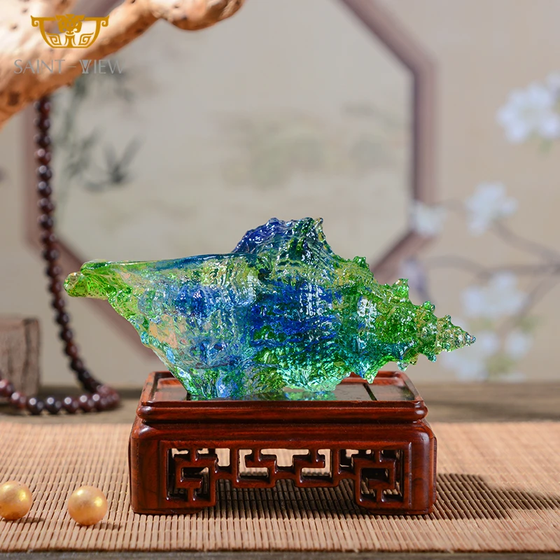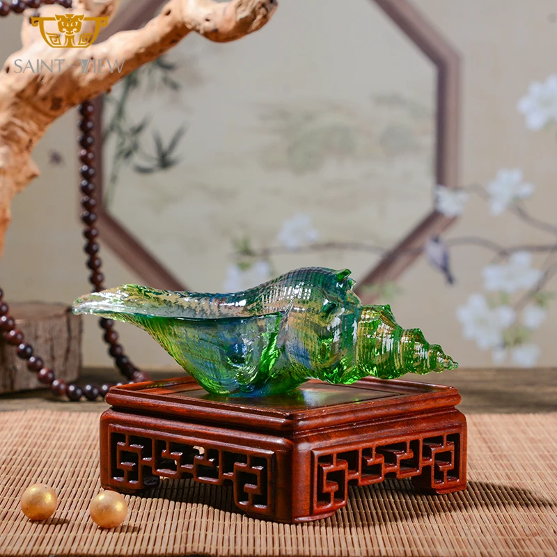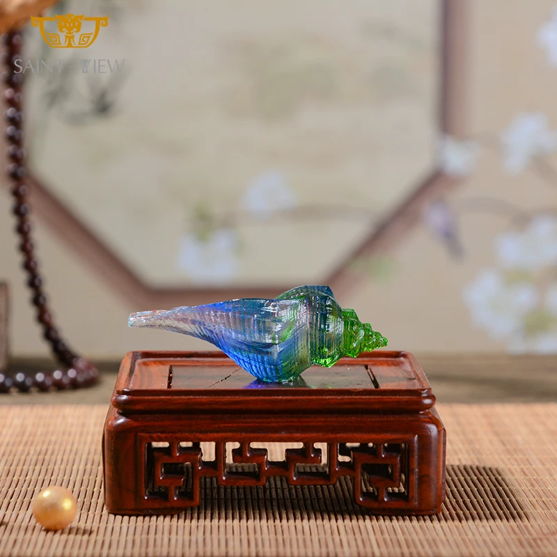 Handicraft Custom Art Home Decoration Ornament Crystal Glass Conch Seashell Figurine Sculpture Gift