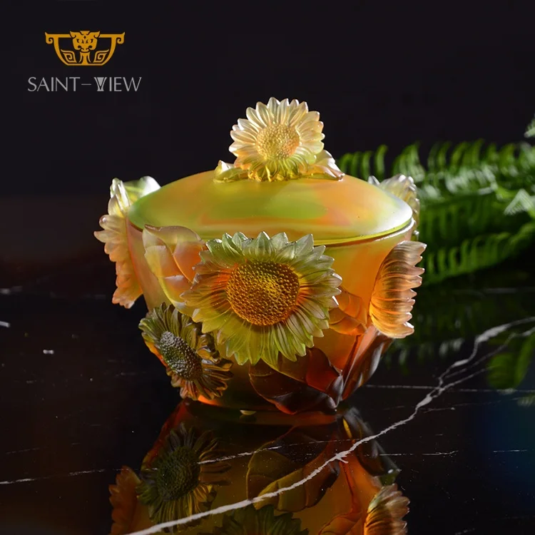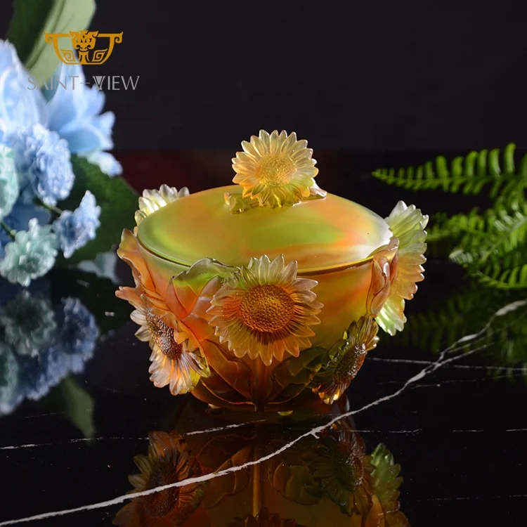 2026 Best Selling Crystal Glass Sunflower Sugar Jar Desk Ornaments Office Decoration