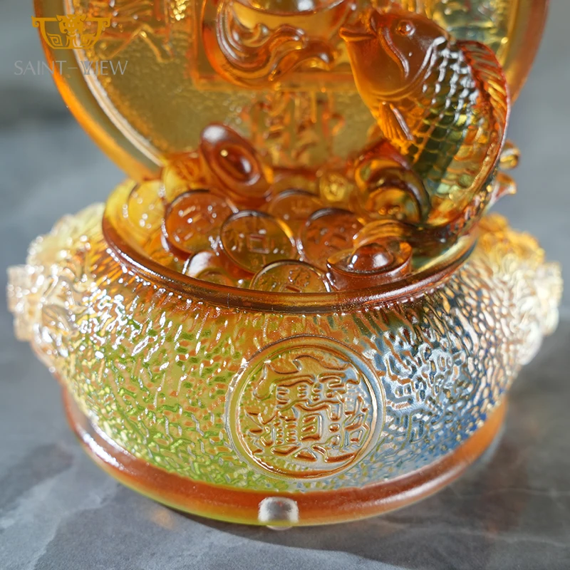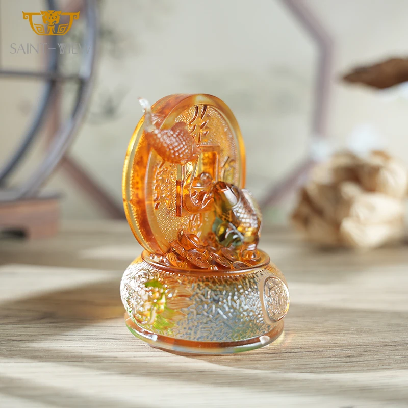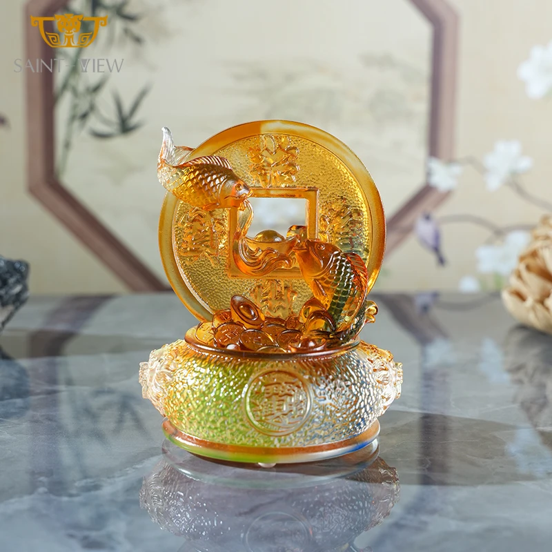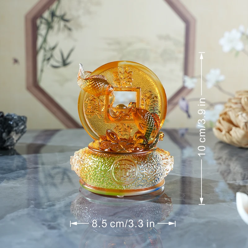 Chinese Coin Crystal Glass Dragon Sculpture Traditional Feng Shui Decor for Prosperity and Wealth