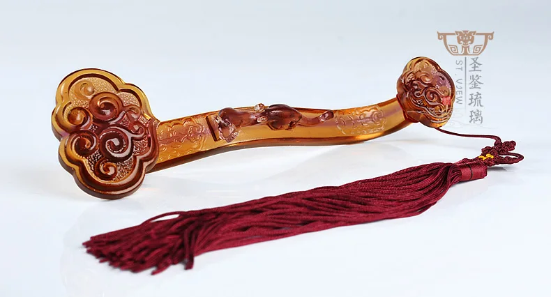 Colored Glaze Ruyi With Ingot Dragon Chinese Fengshui Decor Ornament Gift