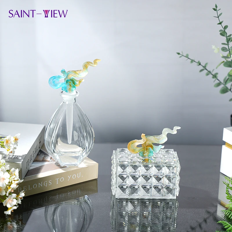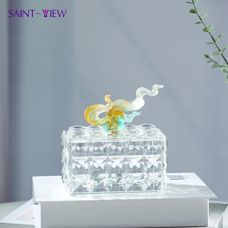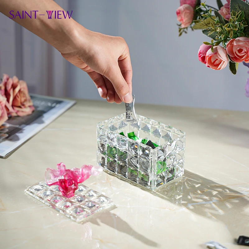 Fancy Ramadan Gift Set Carved Crystal Box with Engraved Flower Design Chocolate Glass Jars for Sugar Storage Bowl