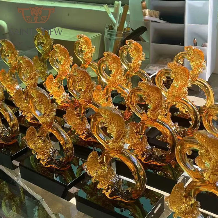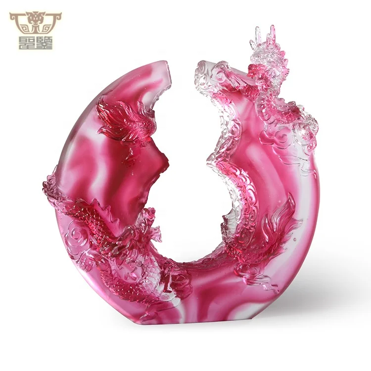 Exquisite Red Glass Double Dragon Figurine Statue Decorative Liuli Craft Chinese Zodiac Animal