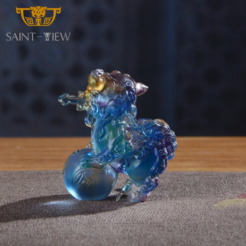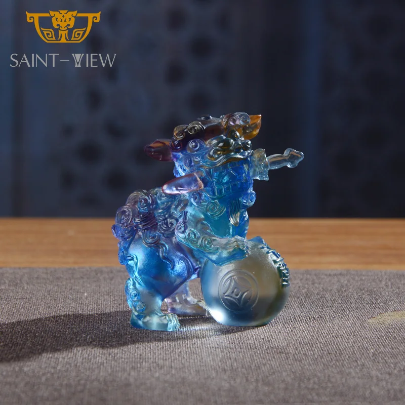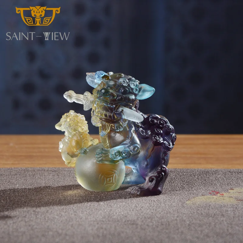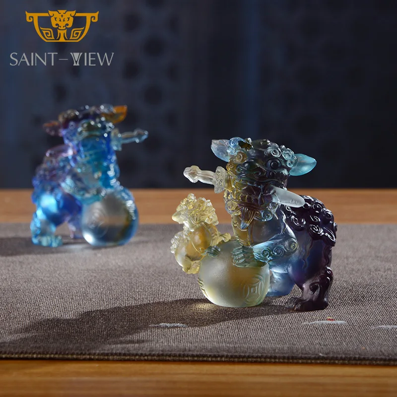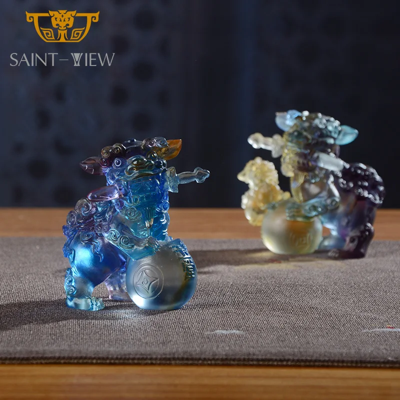 Crystal Glass Manufacture Wholesale Crystal Liuli Pair Auspicious Lions Mini Statues Wedding Gift Fengshui