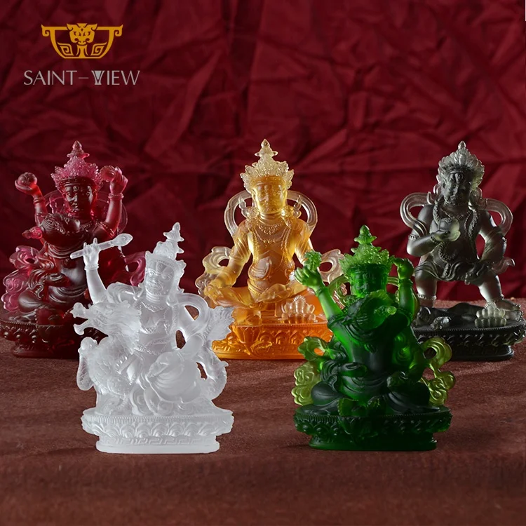 Factory Wholesale Five Ways God of Wealth Crystal Buddhism Statue Figurine