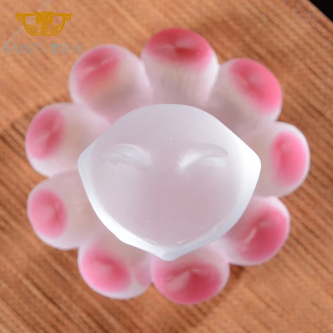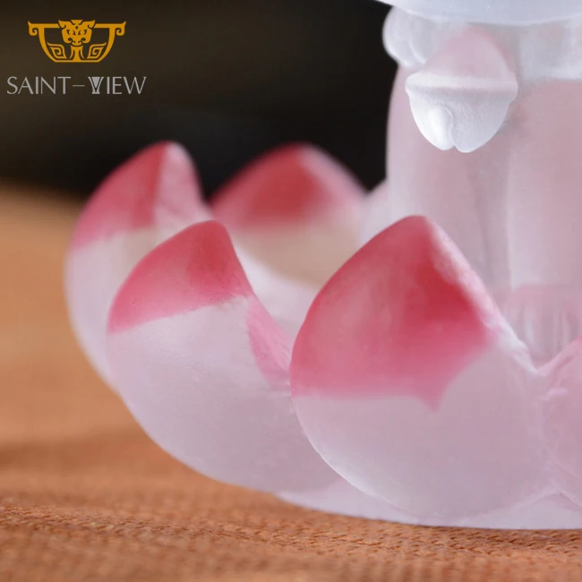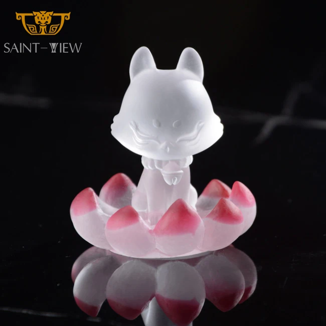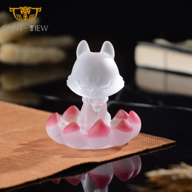 Hand Carved Animals Crystal Glass Ornament Nine-tailed Fox Carving for Home Decoration