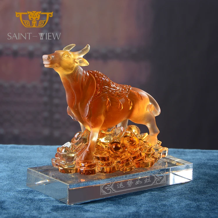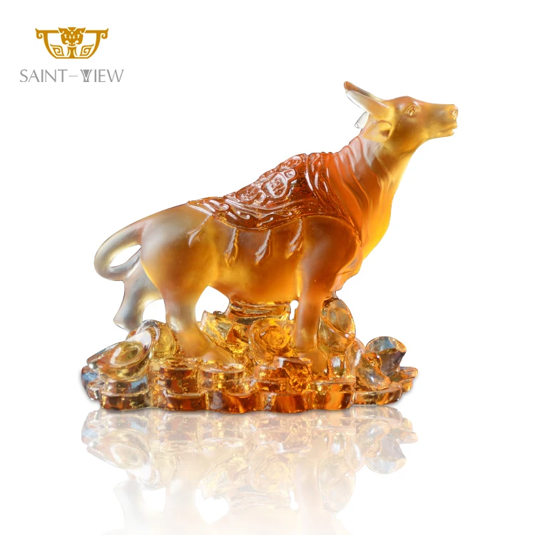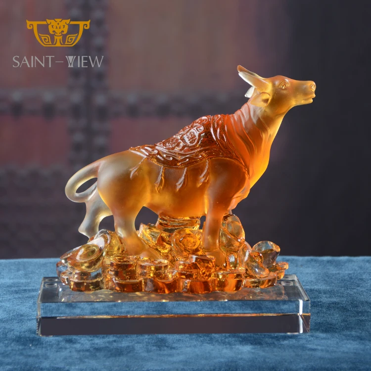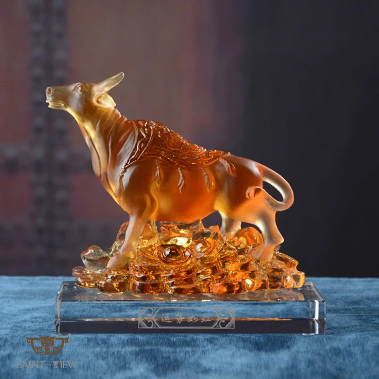 2026 New Year Crystal Glass Liuli Golden Bull Sculpture With Coin Money-Drawing Fengshui Craft Decor