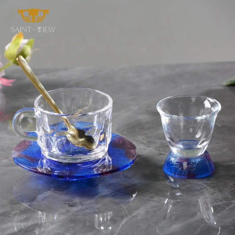 Handmade Mini Arabic Crystal Coaster Glass Coffee Tea Cup Set for Home Tableware