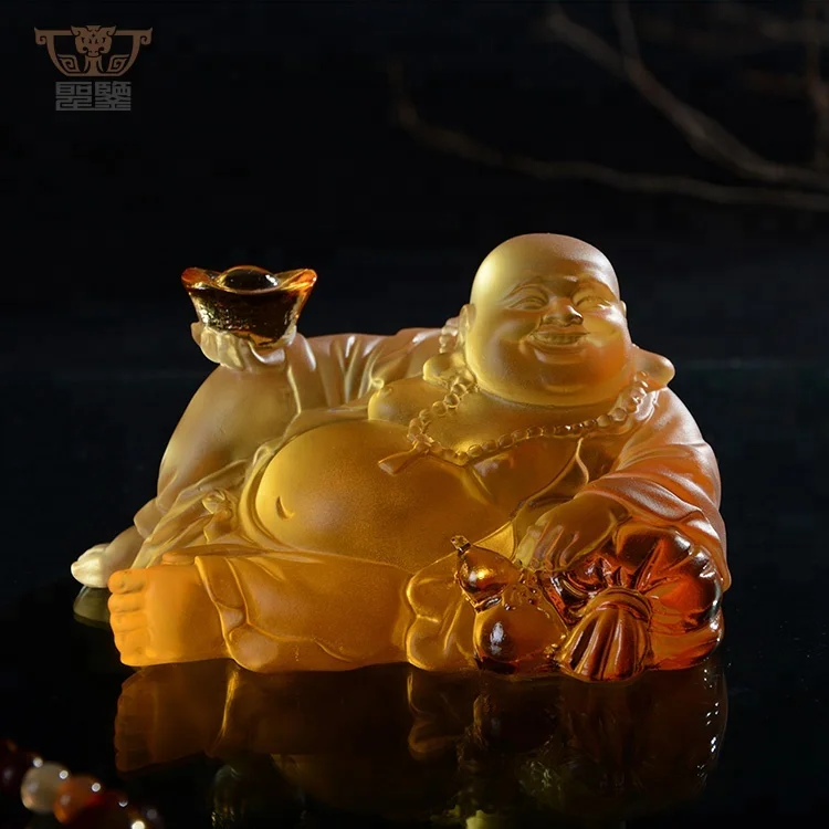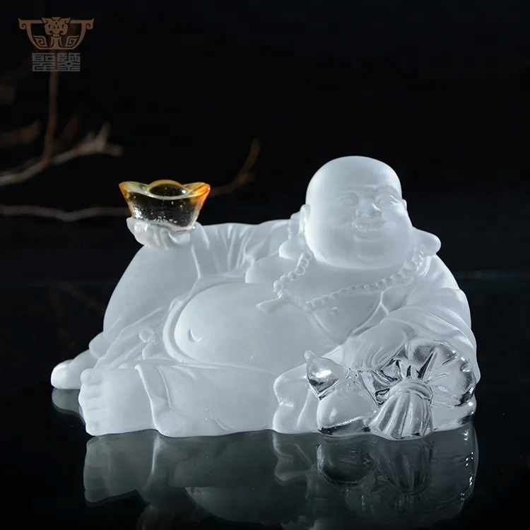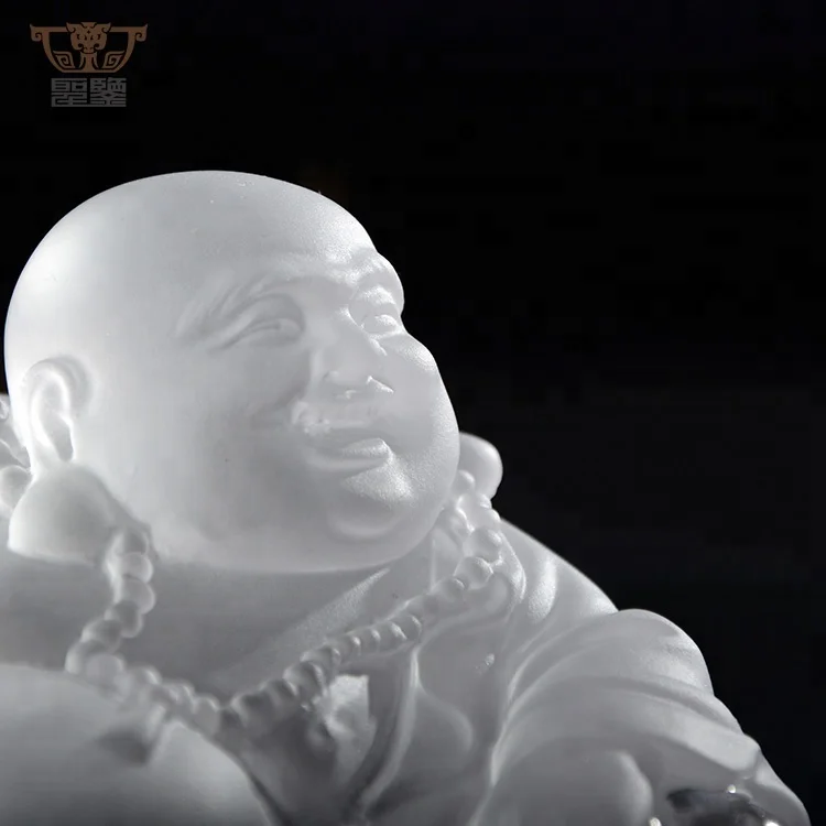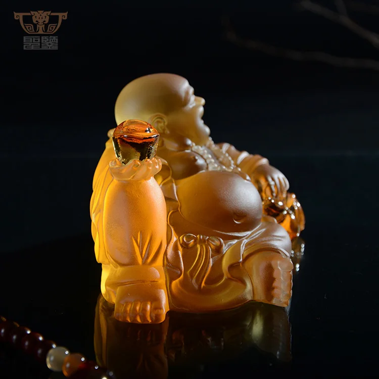 Religion Crystal Liuli Laughing Buddha Statue Colored Maitreya Sculpture Car Decoration Ornament
