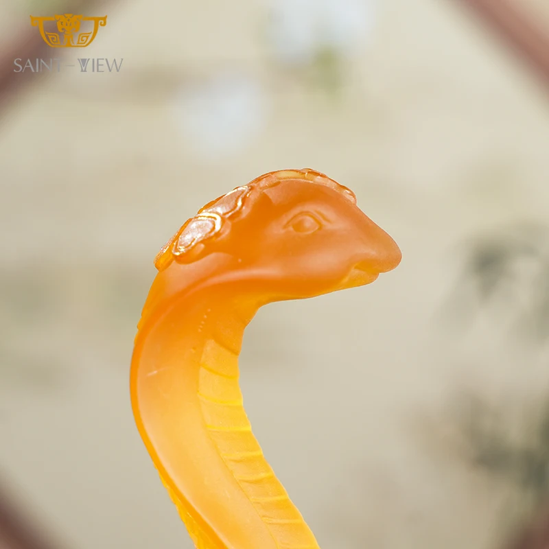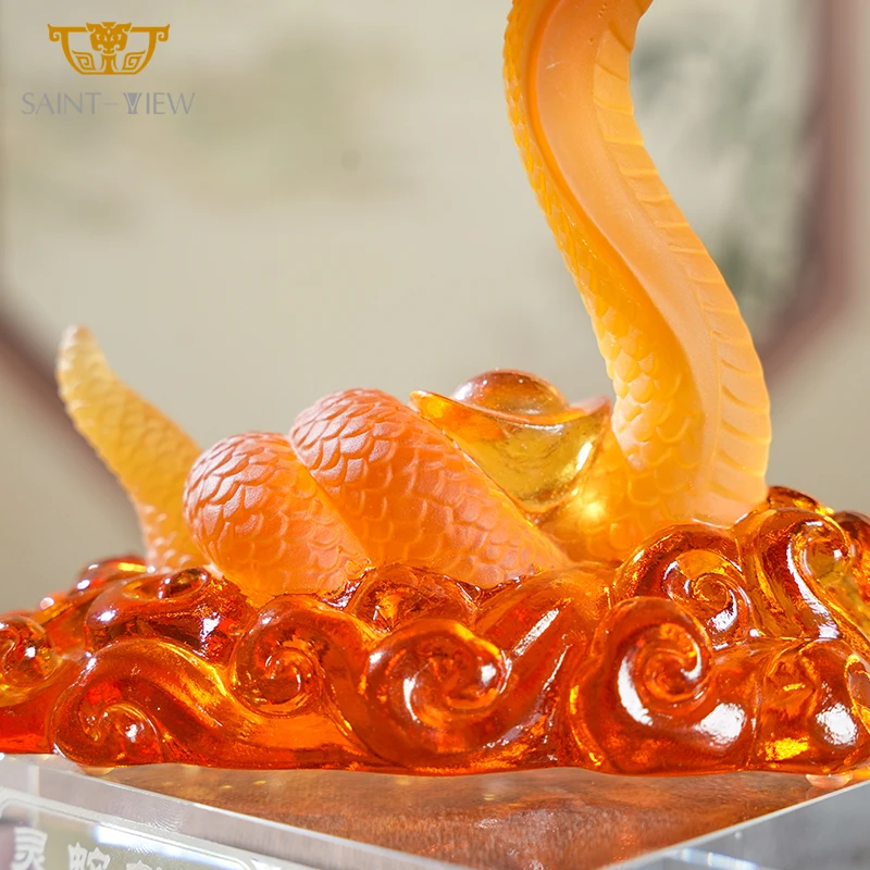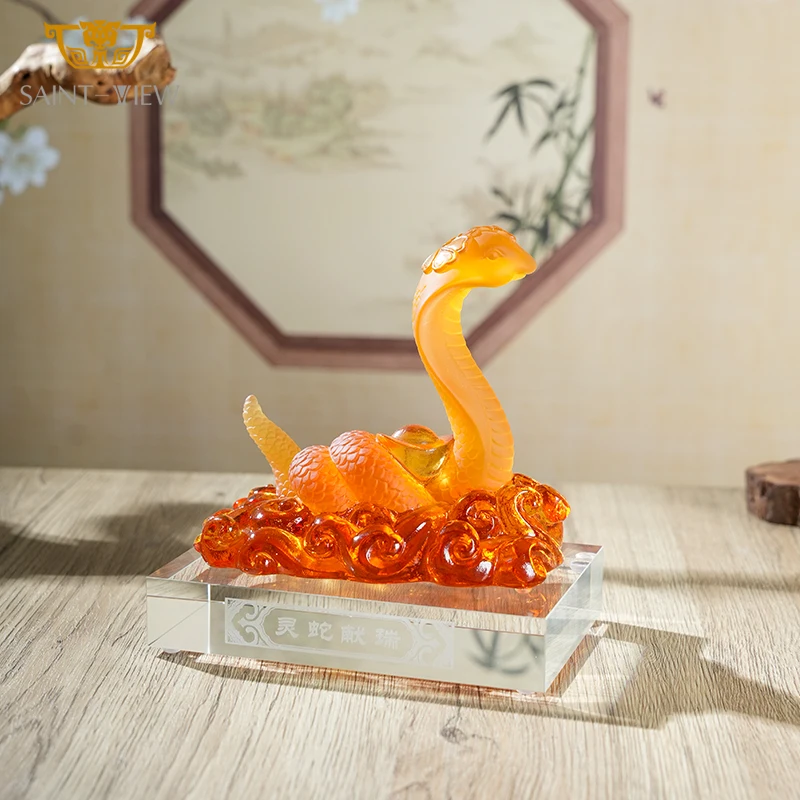 New Year 2026 Snake Glass Ornament Traditional Chinese Zodiac Decor Lucky Charm Handcrafted Art Feng Shui Gift for Home