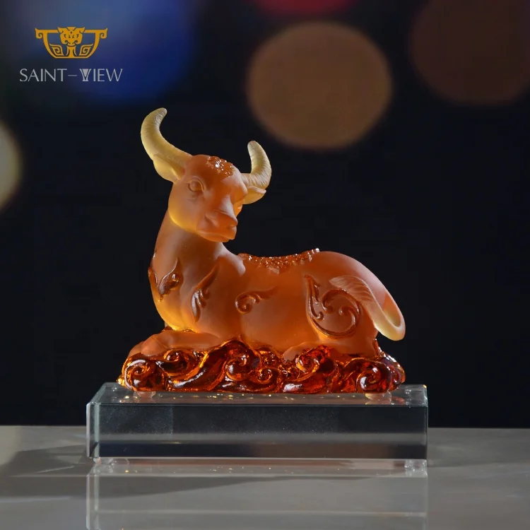 SAINT-VIEW Crystal Liuli Office Gift Livingroom Animal Custom Decoration Zodiac Tiger Bull Mouse Statuary