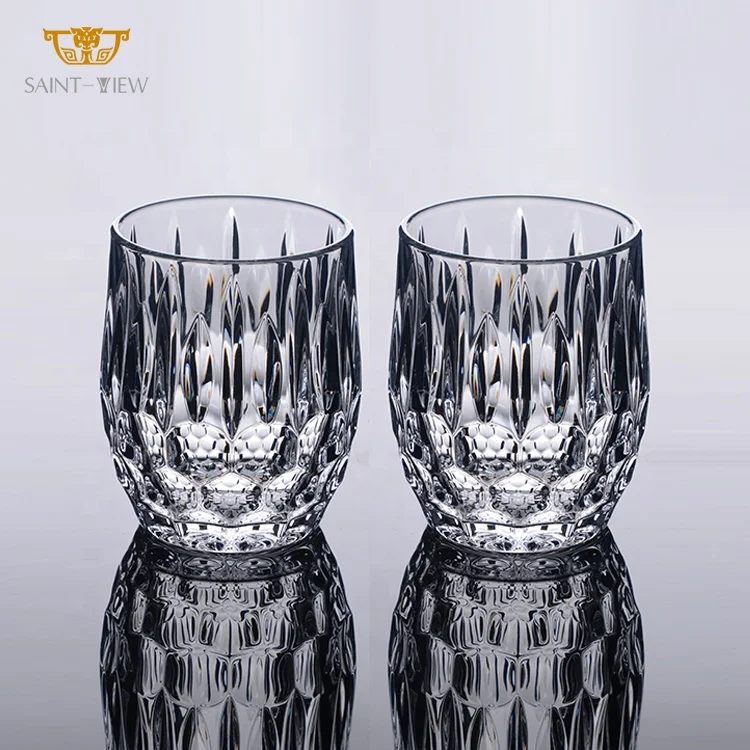 Custom Square Shot Glass Cup Handmade Wavy Fancy Frosted Crystal High Ripple Clear Design Wine Whiskey Tea Classic Cups
