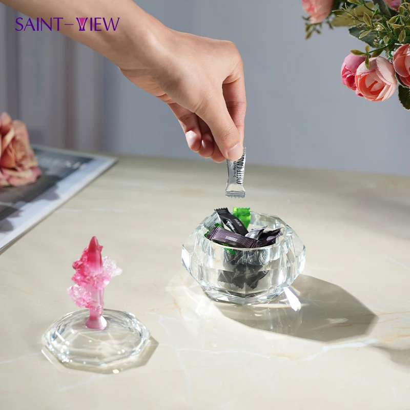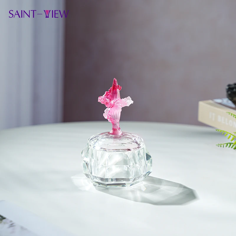 Handmade Flower Glass Crystal Trinket Box Angel Theme Polished Glass Lid for Home Decoration Valentine's Day Jewelry Storage