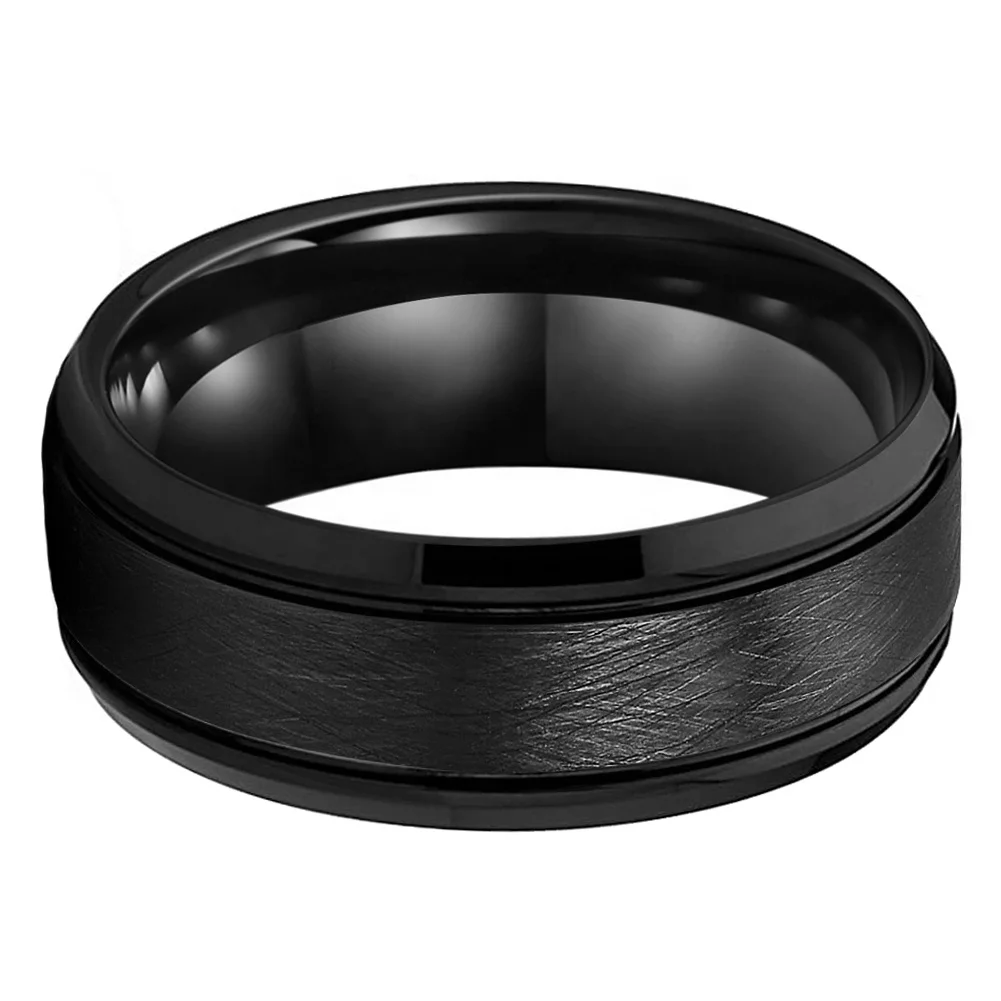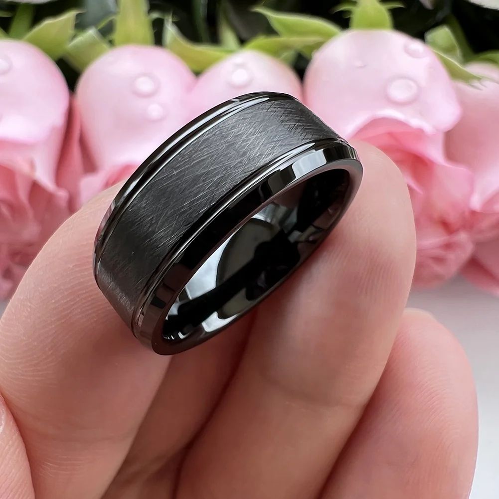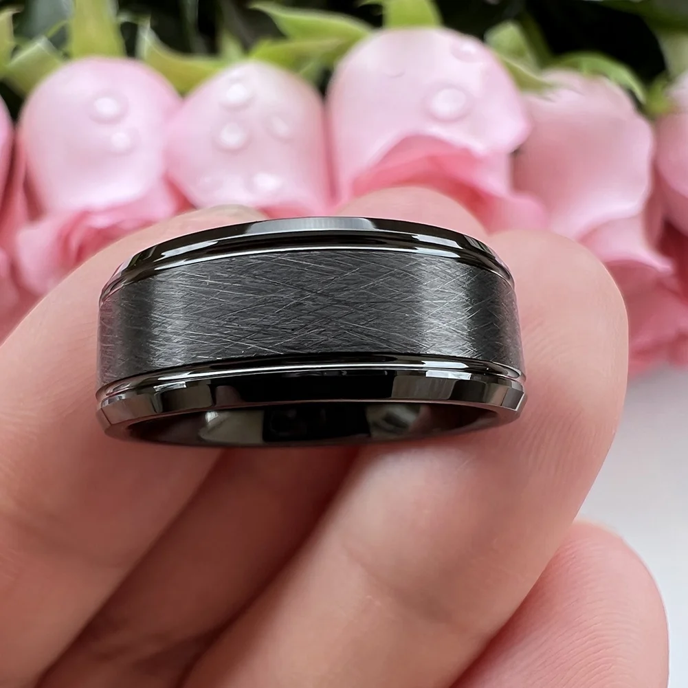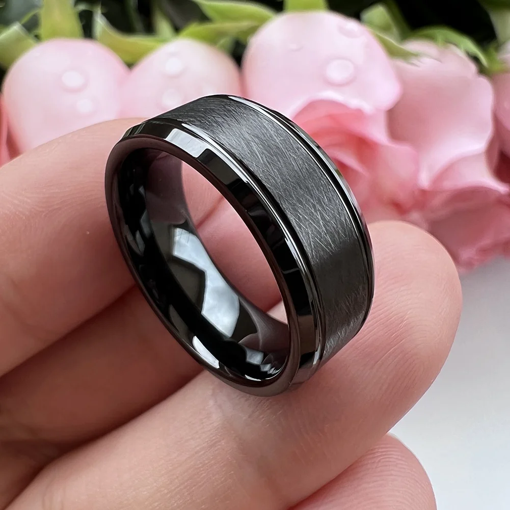 Coolstyle Jewelry 8mm Wholesale Beveled Edges Special Brushed Black Tungsten Ring for Men Women Fashion Engagement Wedding Band