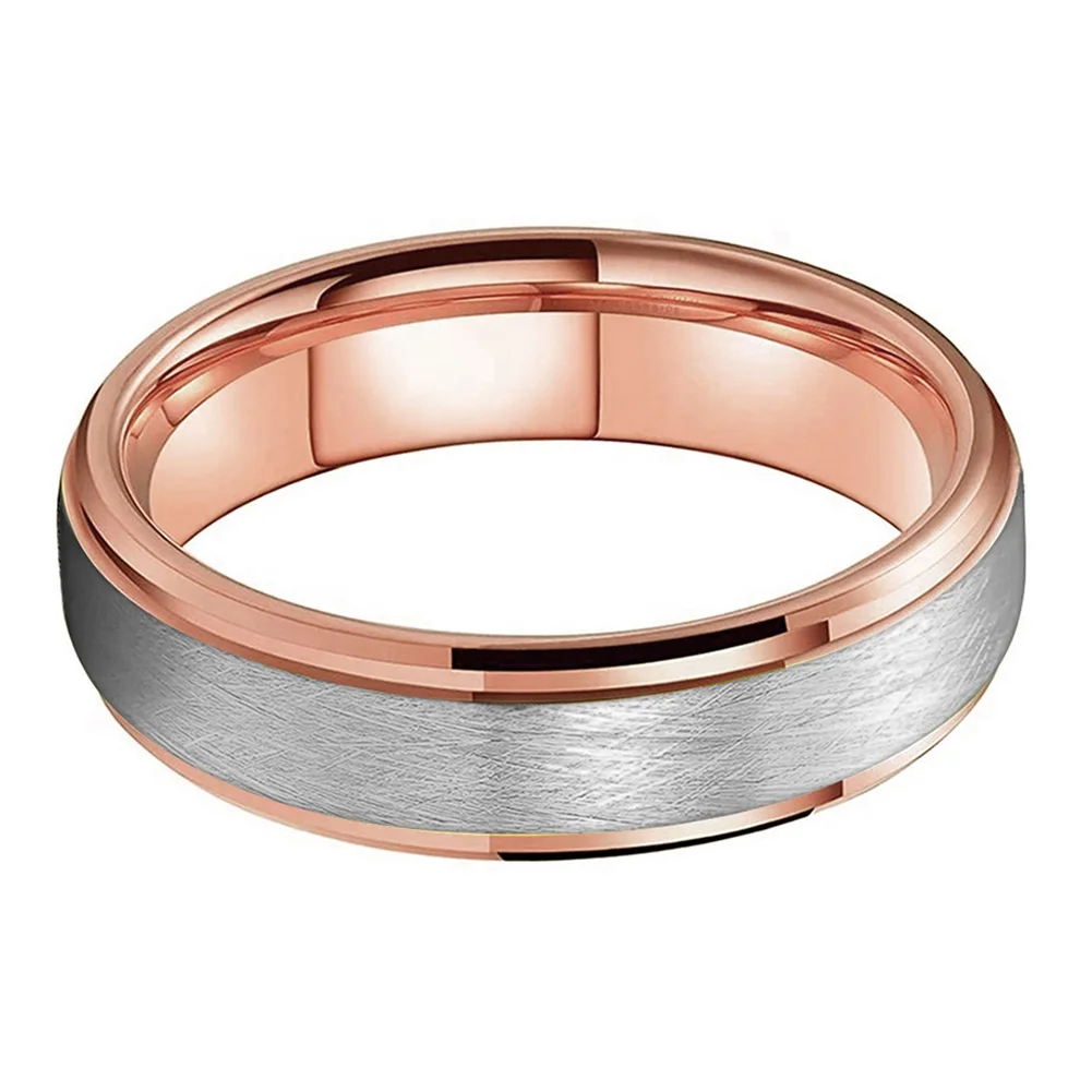 Coolstyle Jewelry 6mm Stepped Beveled Brushed Rose Gold Silver Top Tungsten Ring for Men Women Fashion Wedding Band Comfort Fit