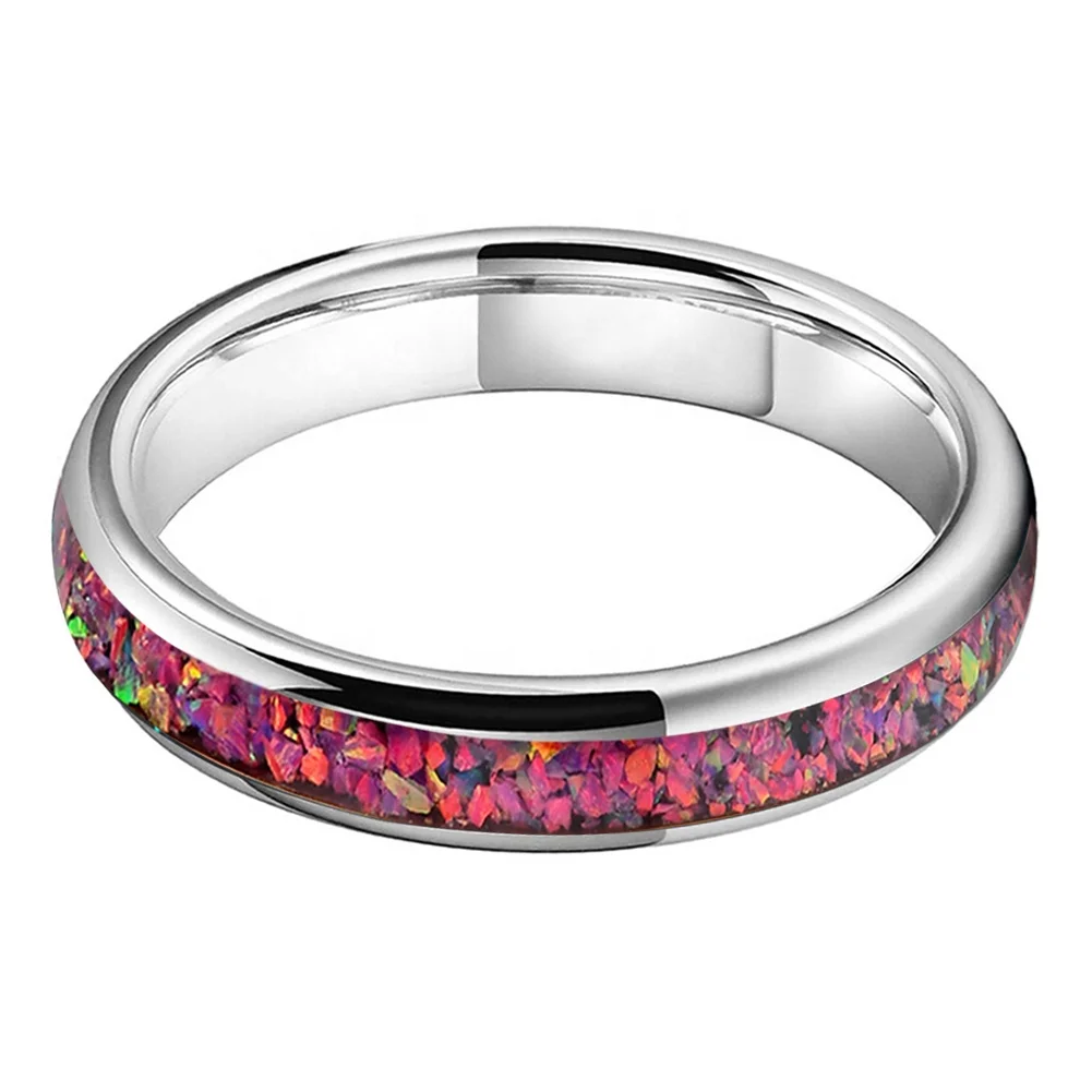 Coolstyle Jewelry 4mm Fashion Jewelry Opla Inlay Tungsten Carbide Rings for Women Men Wedding Band Domed Polished Comfort Fit