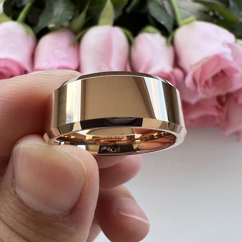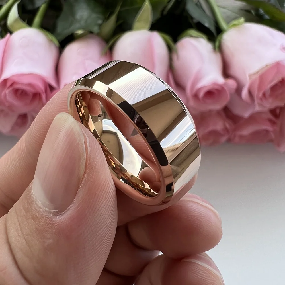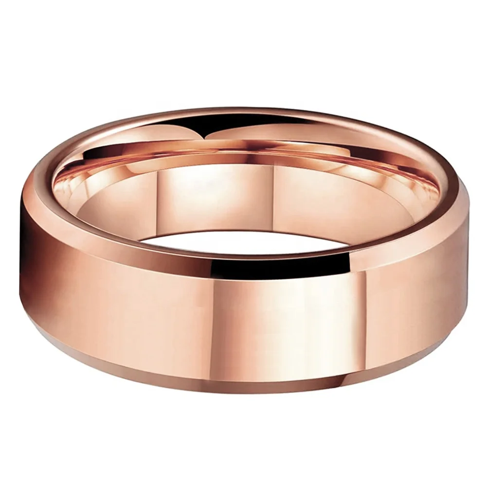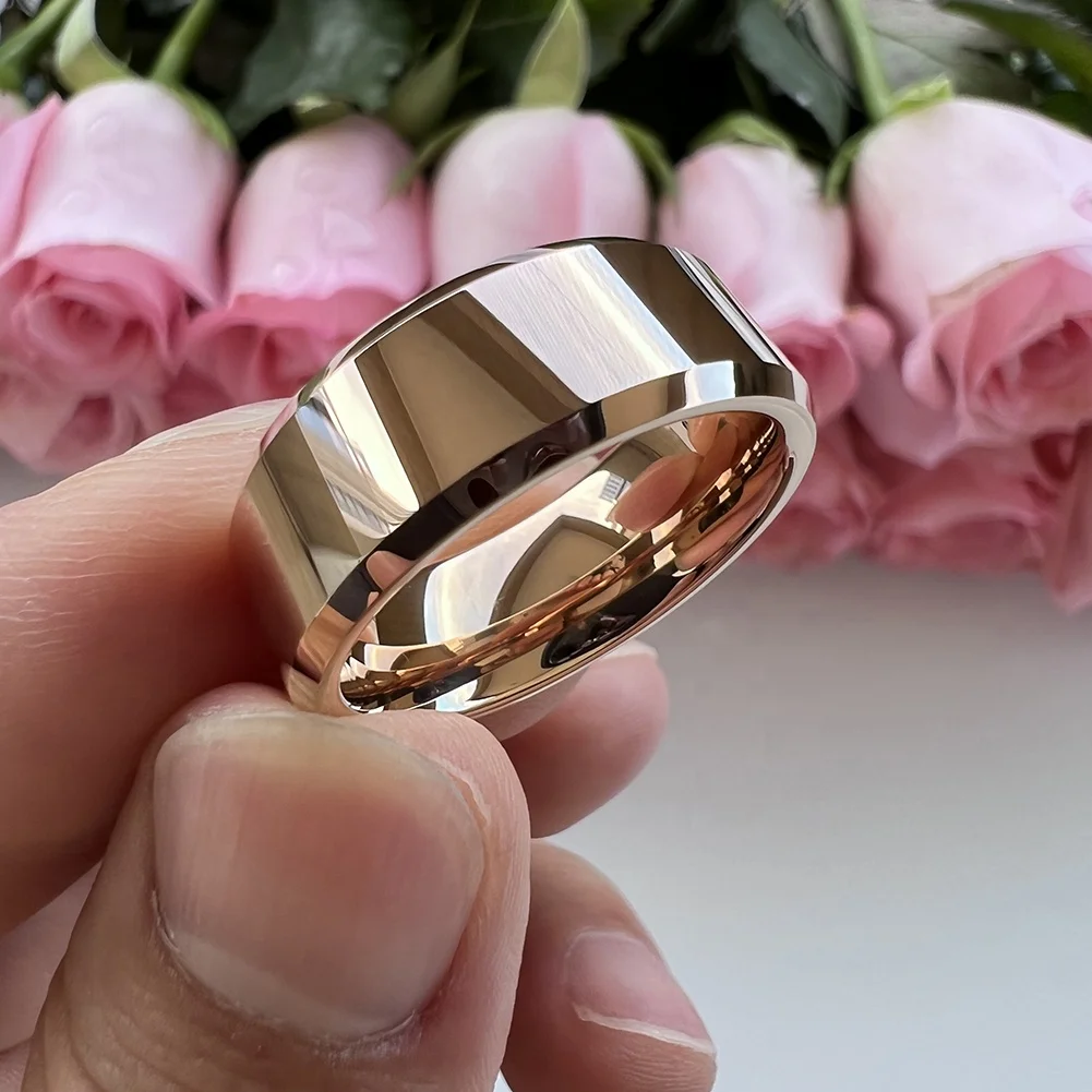 Coolstyle Jewelry Wholesale 8mm Beveled Polished Rose Gold Tungsten Finger Ring for Men Women Fashion Engagement Wedding Band