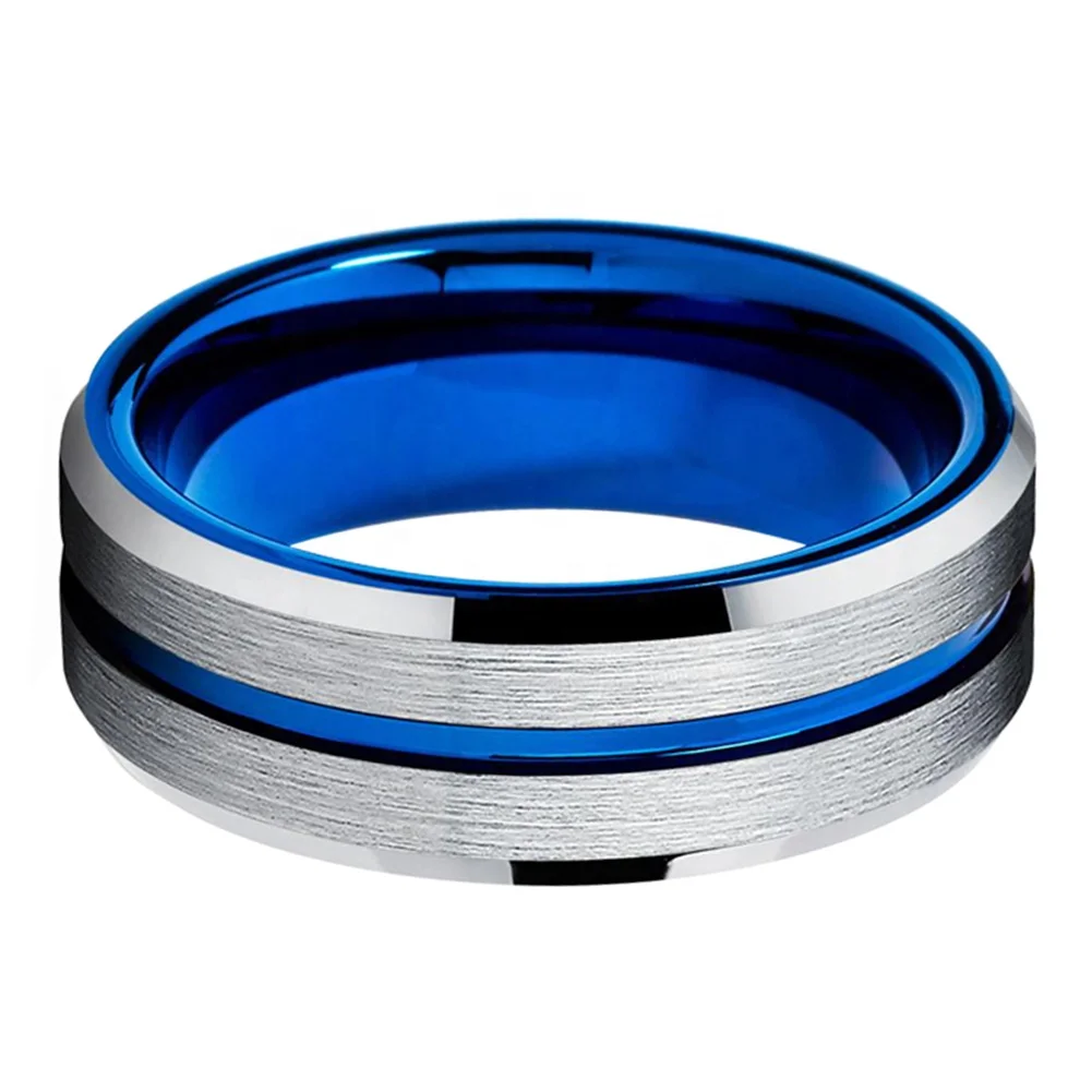 Coolstyle Jewelry 8mm Blue Tungsten Ring for Men Women Wholesale Fashion Engagement Wedding Band Two Tone Beveled Comfort Fit