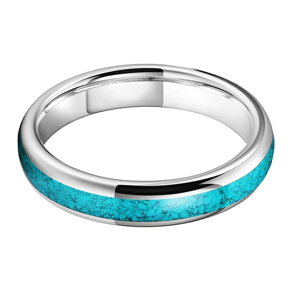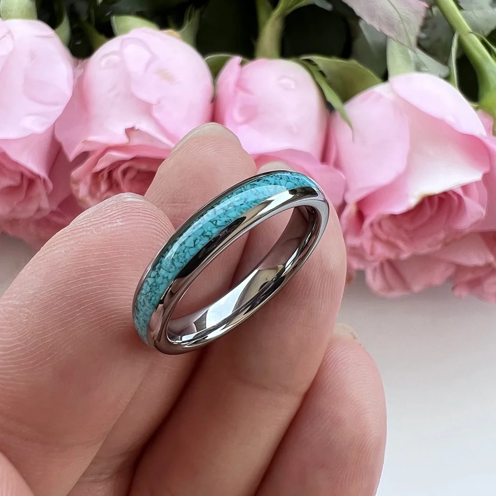Coolstyle Jewelry 4mm Tungsten Carbide Ring for Women Crushed Turquoise Inlay Domed Fashion Jewelry Engagement Wedding Band