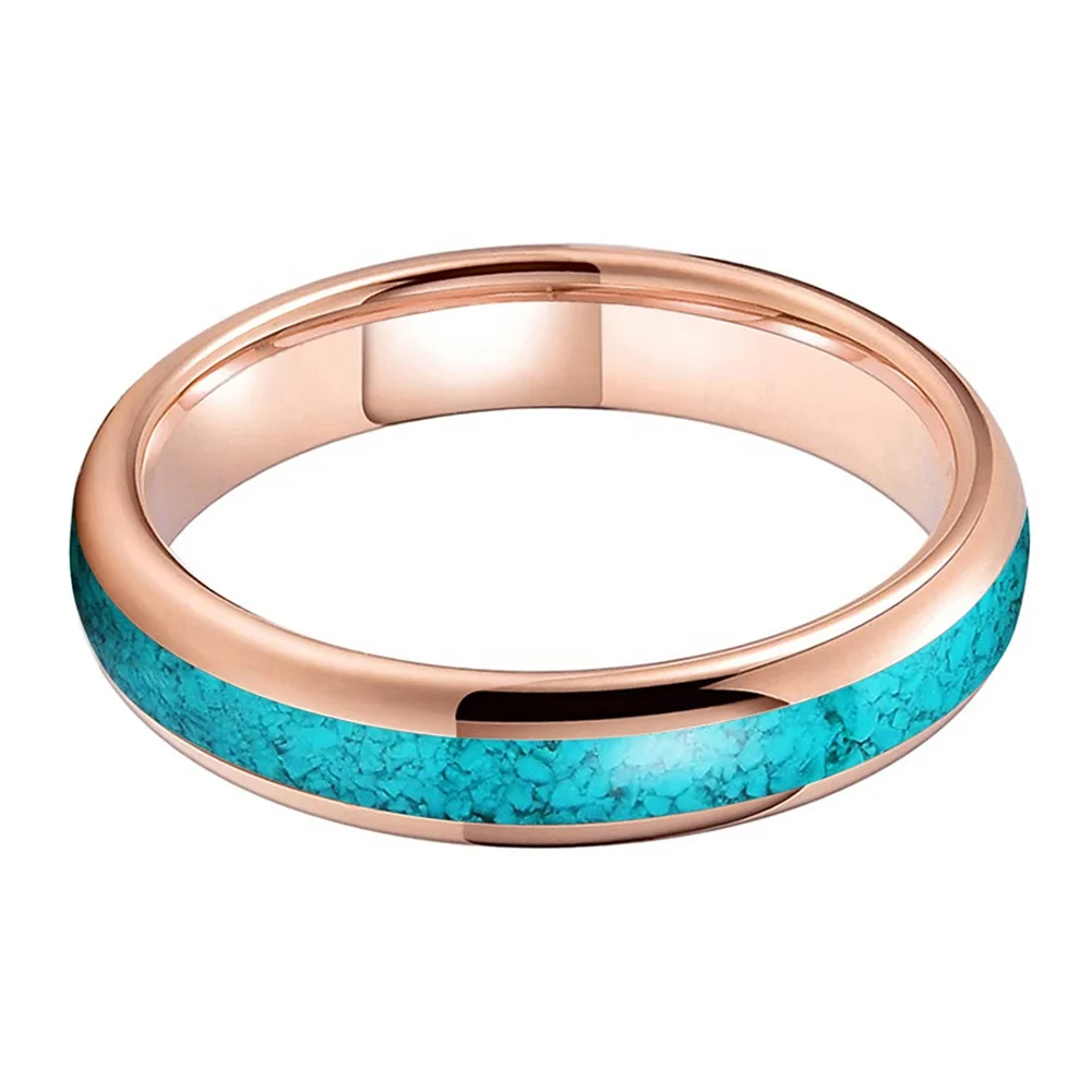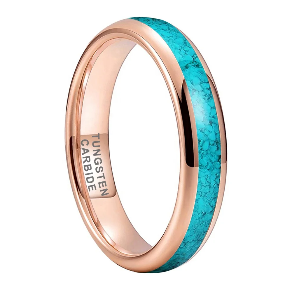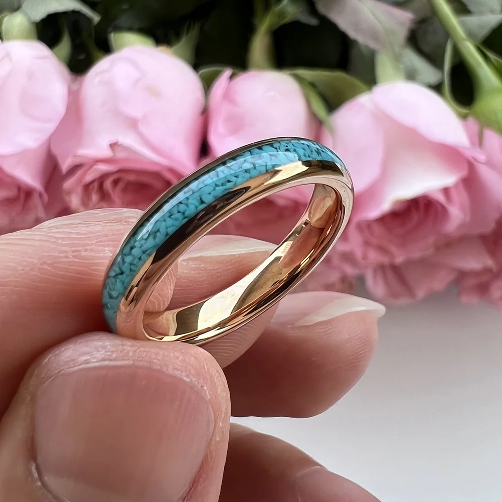 Coolstyle Jewelry 4mm Rose Gold Tungsten Ring for Women Men Crushed Turquoise Inlay Fashion Jewelry Engagement Wedding Band