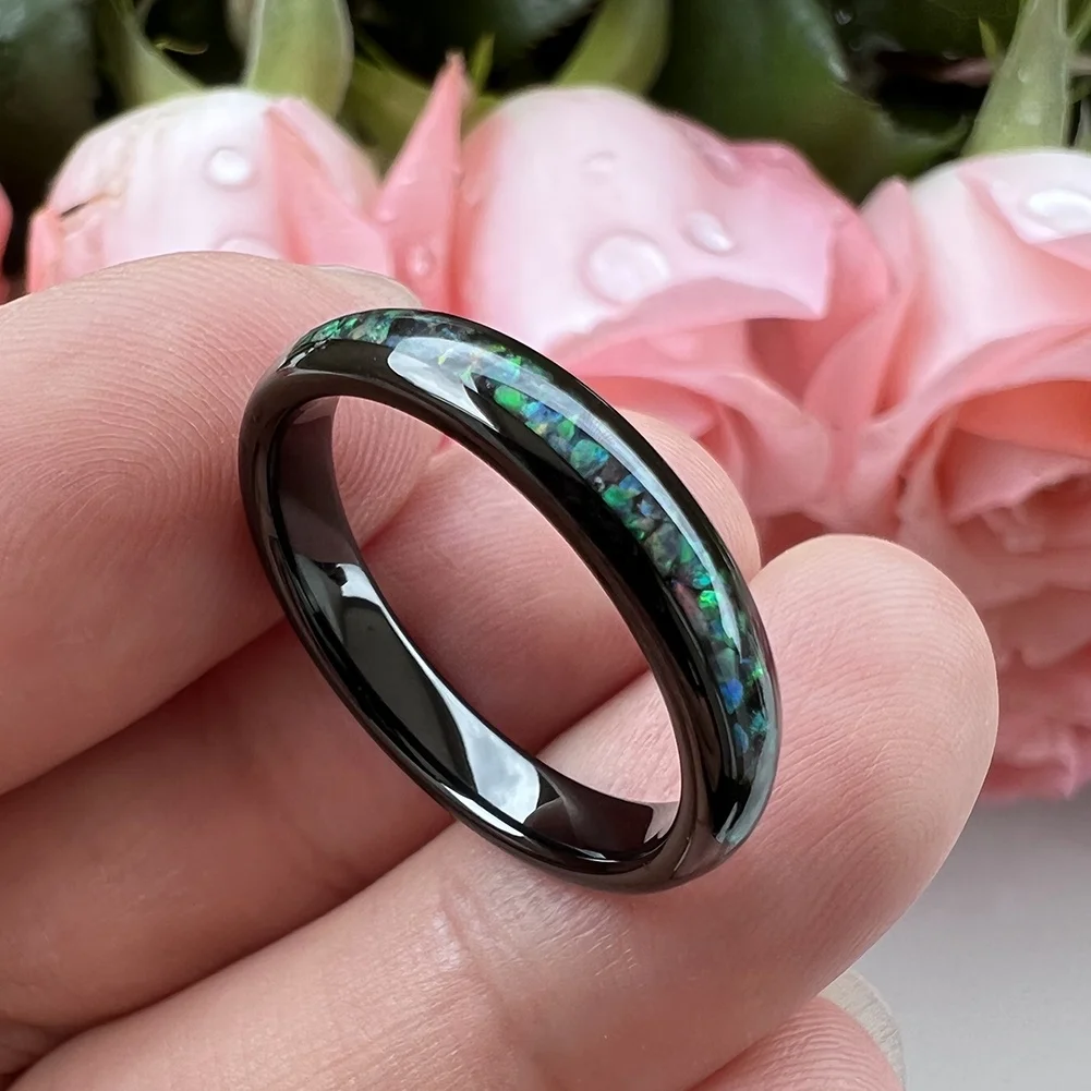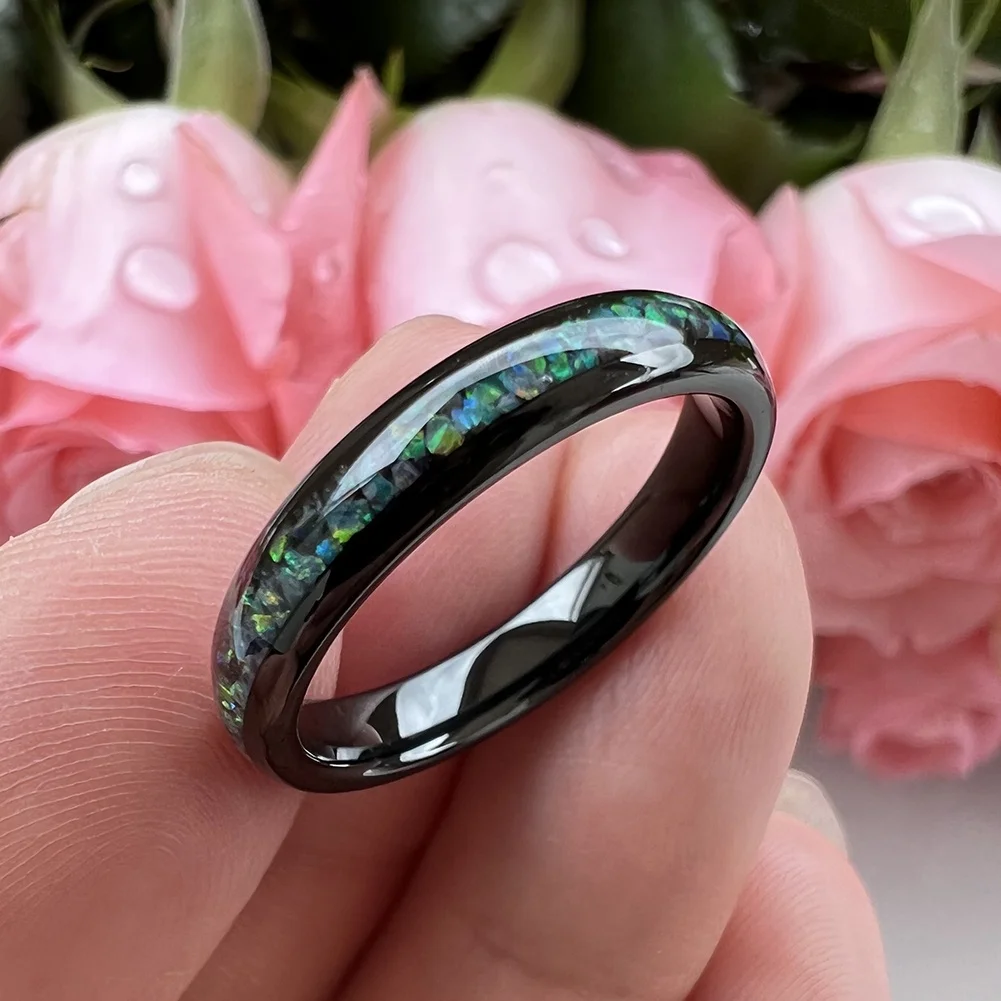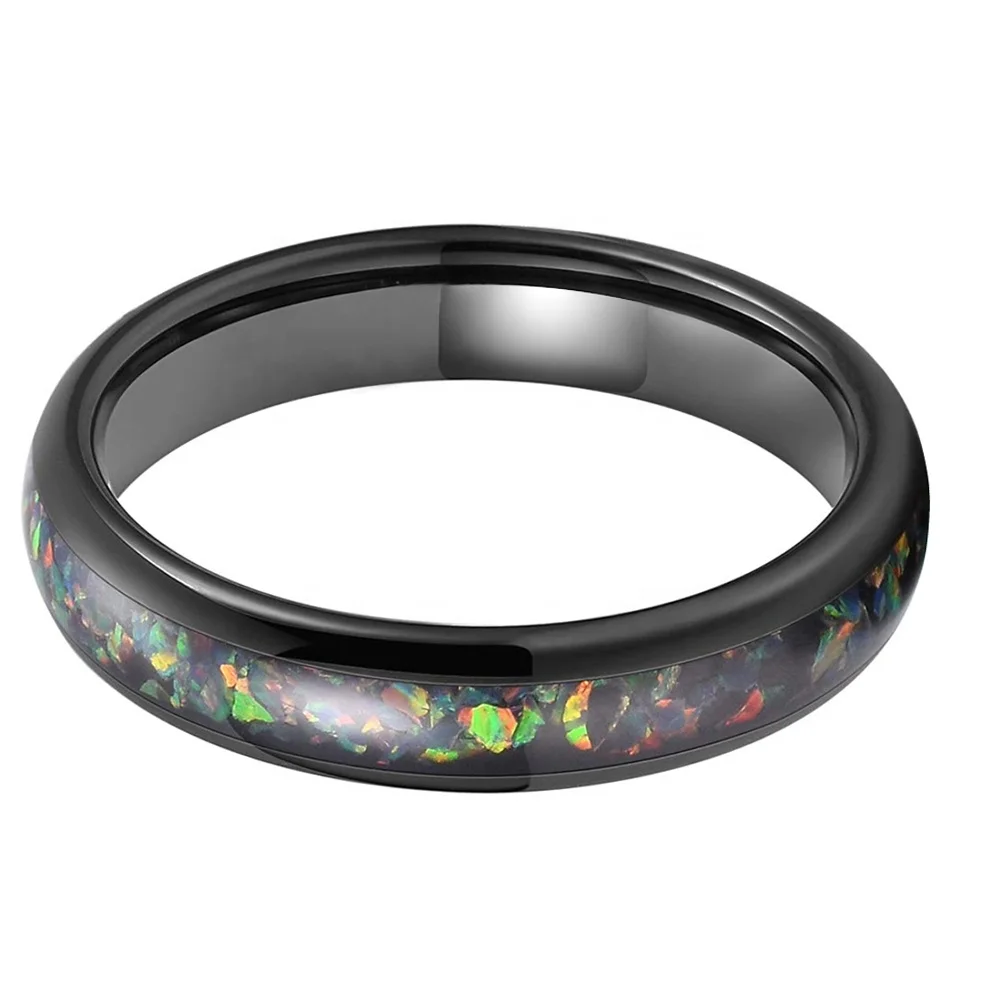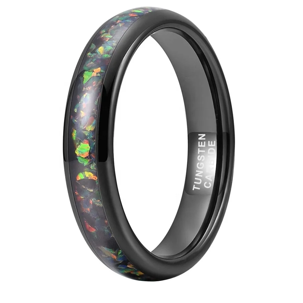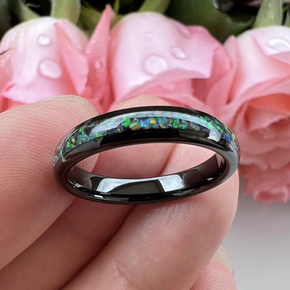 Coolstyle Jewelry 4mm Wholesale Black Tungsten Ring for Women Men Genuine Opal Inlay Fashion Engagement Wedding Band