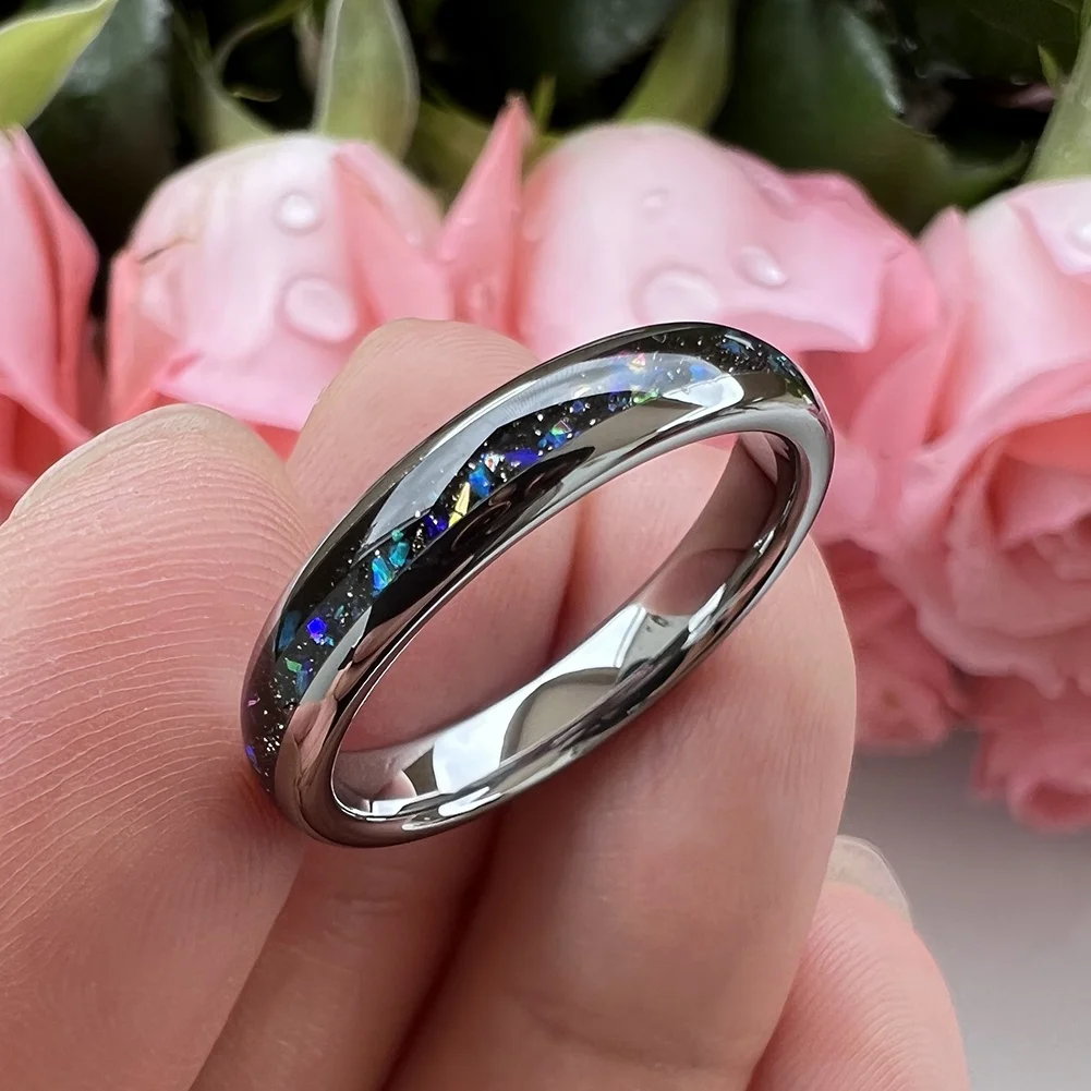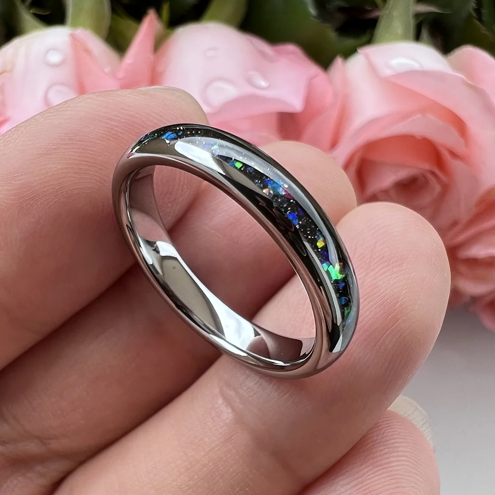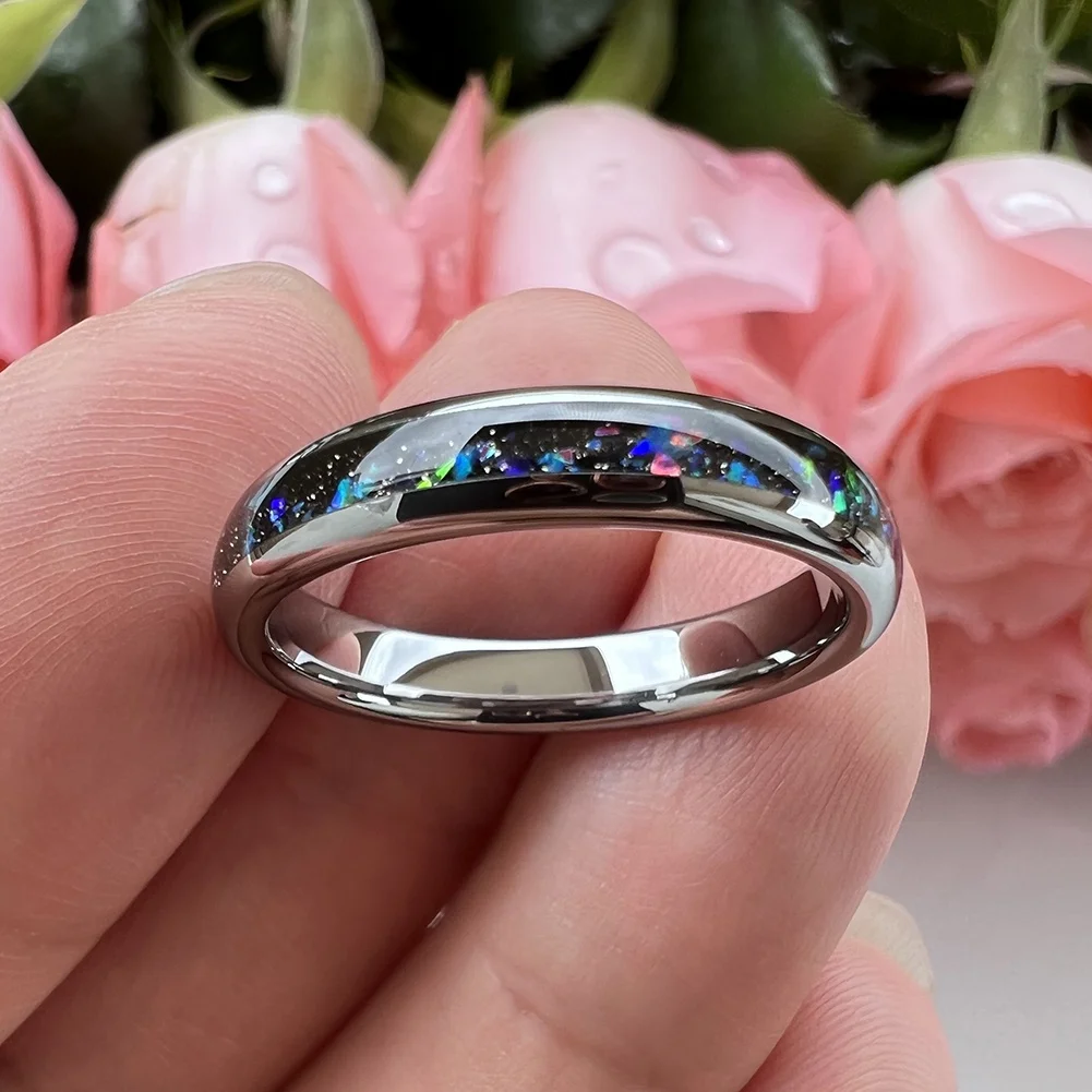Coolstyle Jewelry Wholesale Dropshipping 4mm Tungsten Ring Women Men Fashion Jewelry Galaxy Opal Inlay Engagement Wedding Band