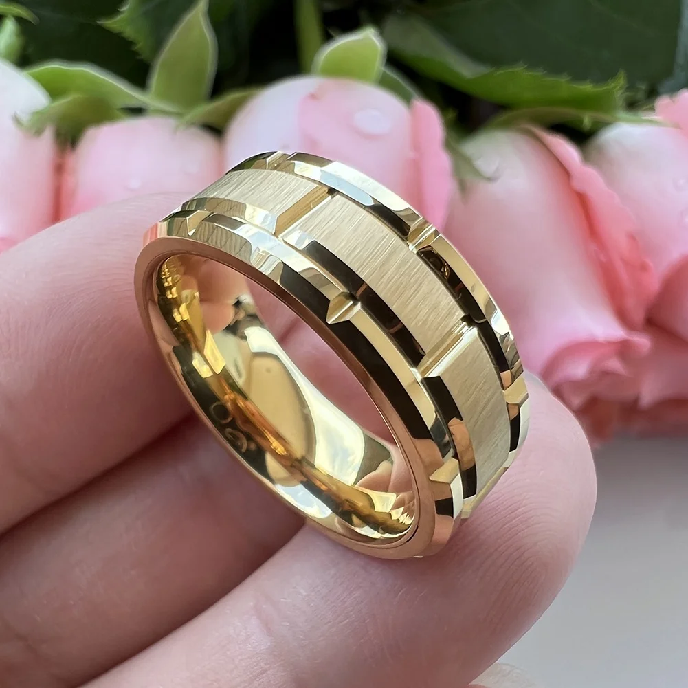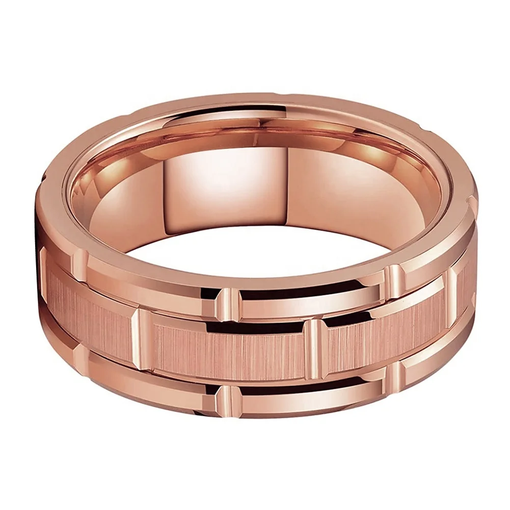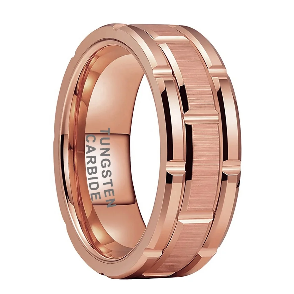 Coolstyle Jewelry 8mm Rose Gold Tungsten Ring for Men Women Promise Wedding Band Brick Pattern Brushed Finish Comfort Fit