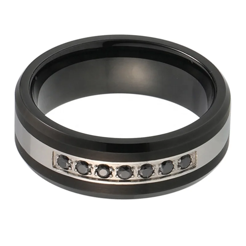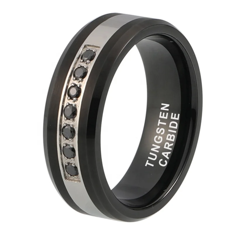 Coolstyle Jewelry 8mm Black Tungsten Ring for Men Women Engagement Promise Wedding Band Cubic Zircon Stone Inlay Comfort Fit