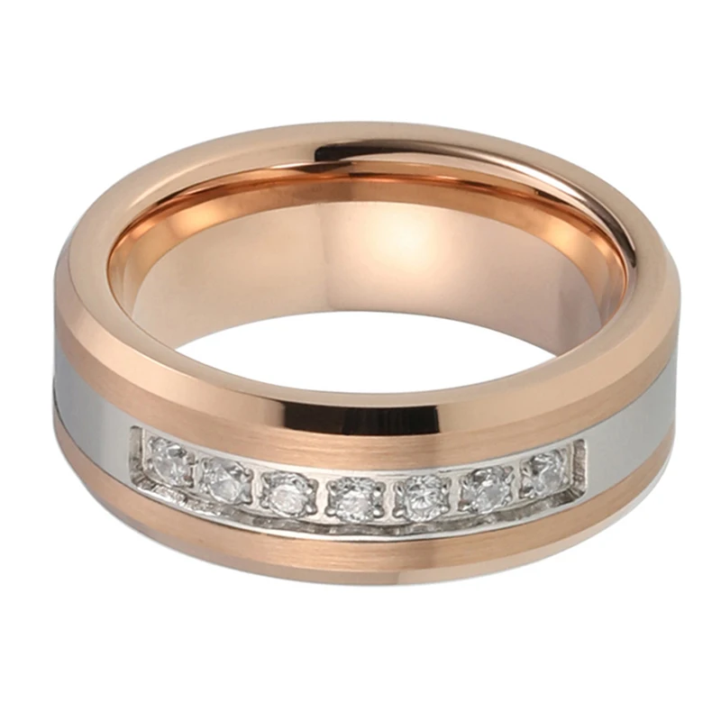Coolstyle Jewelry 8mm Rose Gold Tungsten Ring for Men Women Engagement Promise Wedding Band Cubic Zircon Stone Inlay Comfort Fit