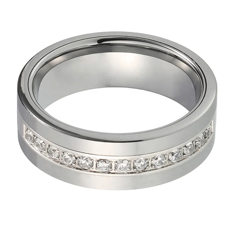Coolstyle Jewelry 8mm Tungsten Carbide Ring for Men Women Engagement Promise Wedding Band Cubic Zircon Stone Inlay Comfort Fit