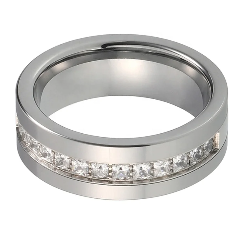 Coolstyle Jewelry 8mm Tungsten Carbide Ring for Men Women Engagement Promise Wedding Band Princess CZ Stone Inlay Comfort Fit