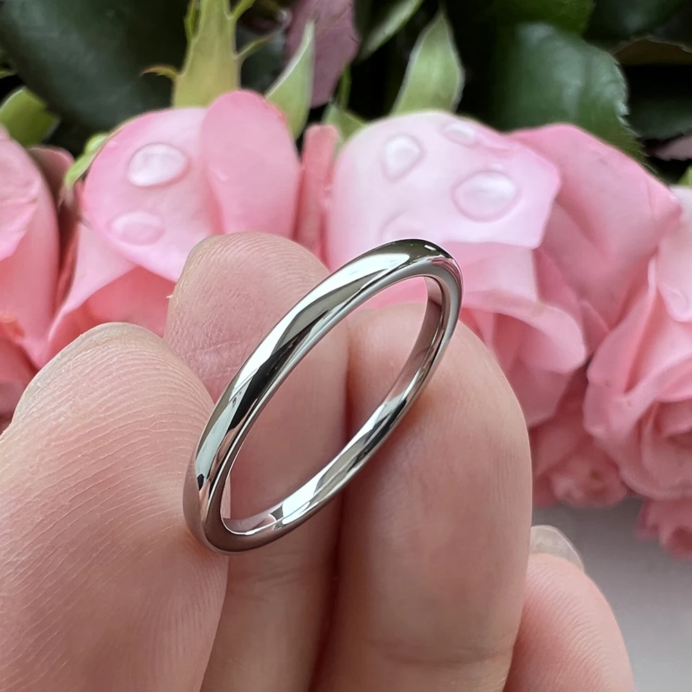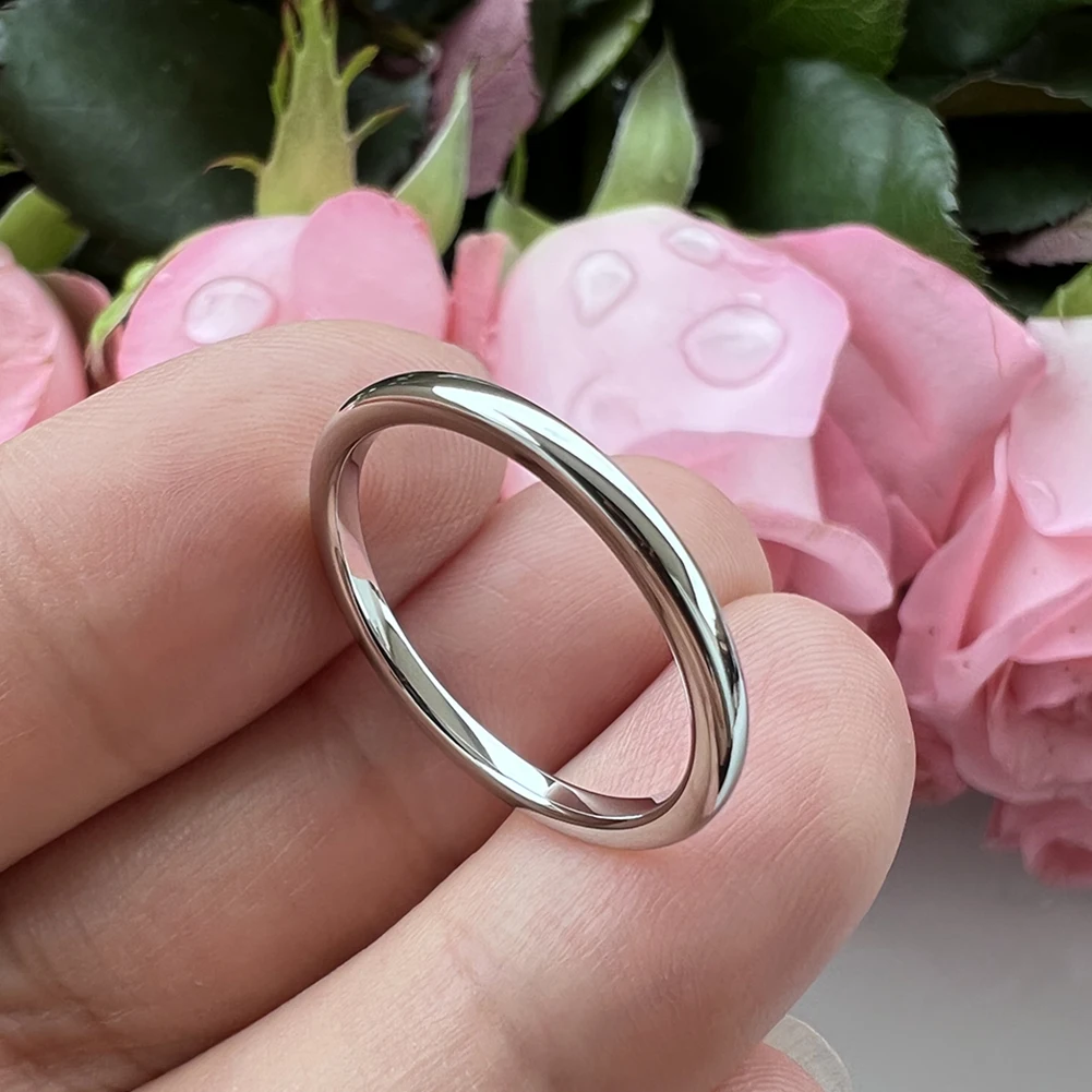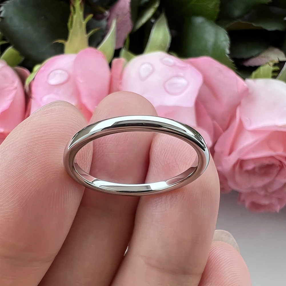 Coolstyle Jewelry 2mm White Tungsten Ring for Women Trendy Engagement Wedding Band Fashion Jewelry Domed Polished Comfort Fit