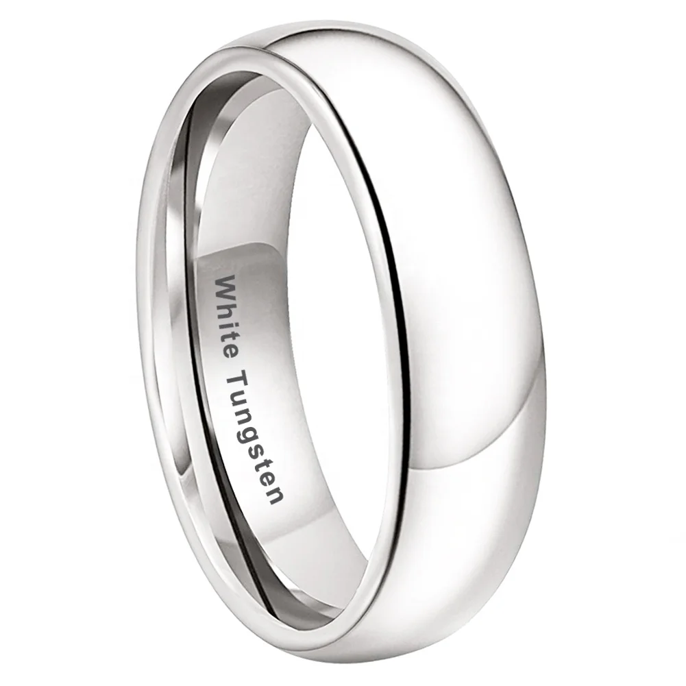 Coolstyle Jewelry 6mm White Tungsten Ring for Men Women Trendy Engagement Wedding Band Fashion Jewelry Polished Comfort Fit