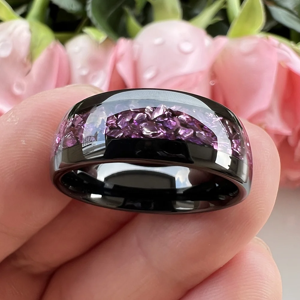 Coolstyle Jewelry 8mm Mens Womens Fashion Jewelry Engagement Wedding Bands Blue Gemstone Inlay Gold Tungsten Carbide Ring