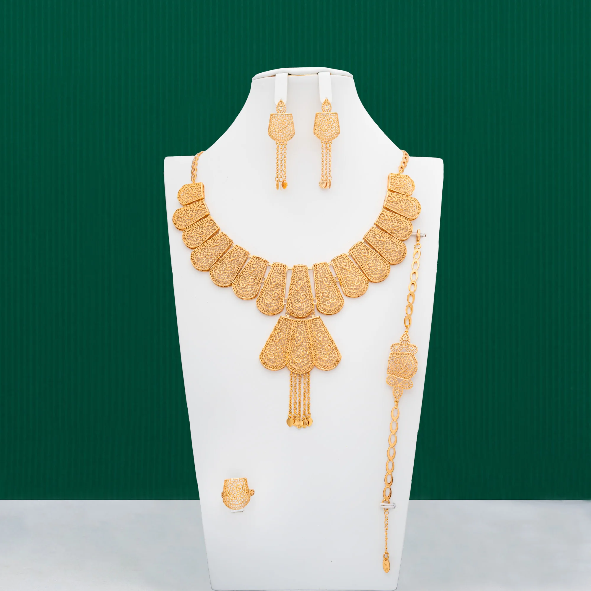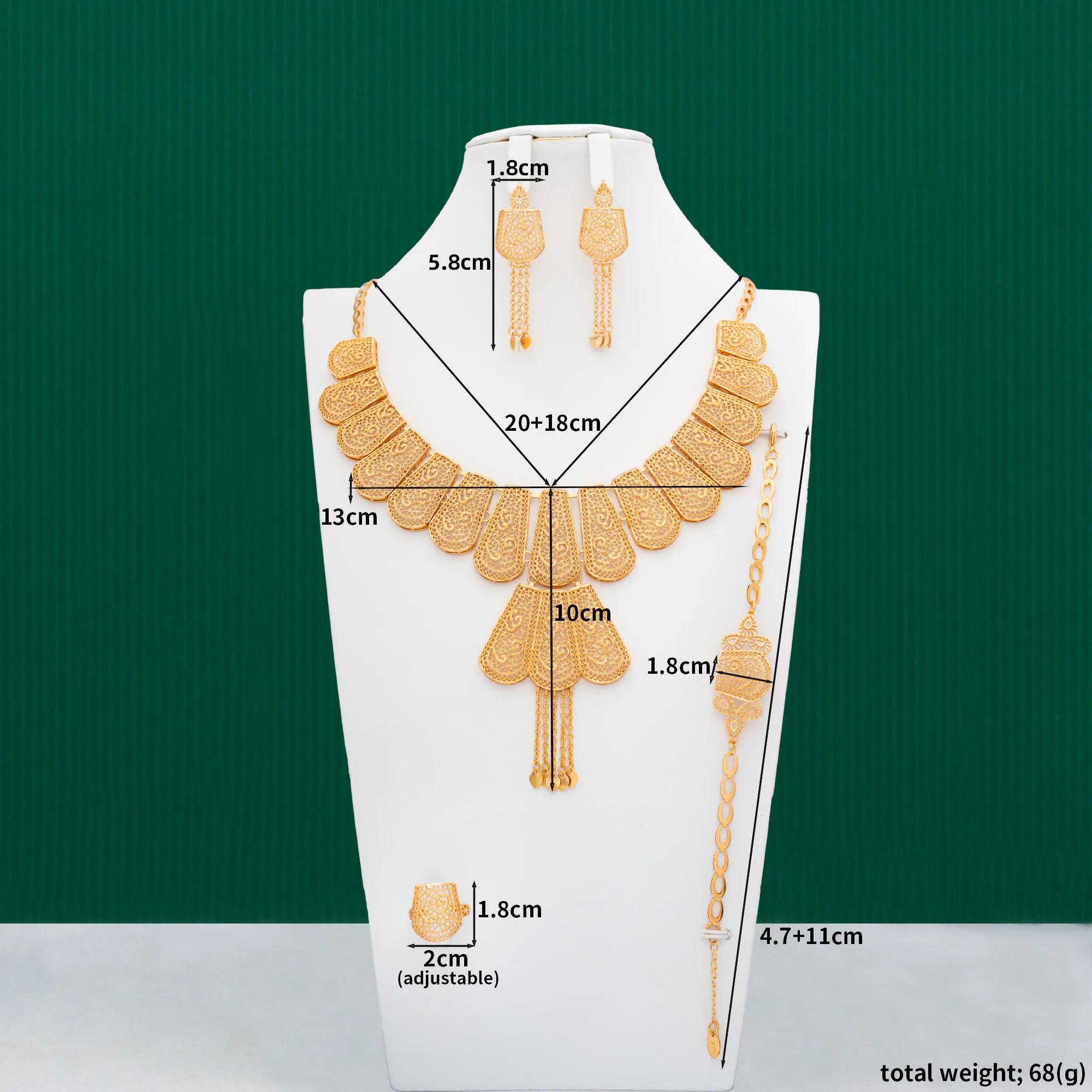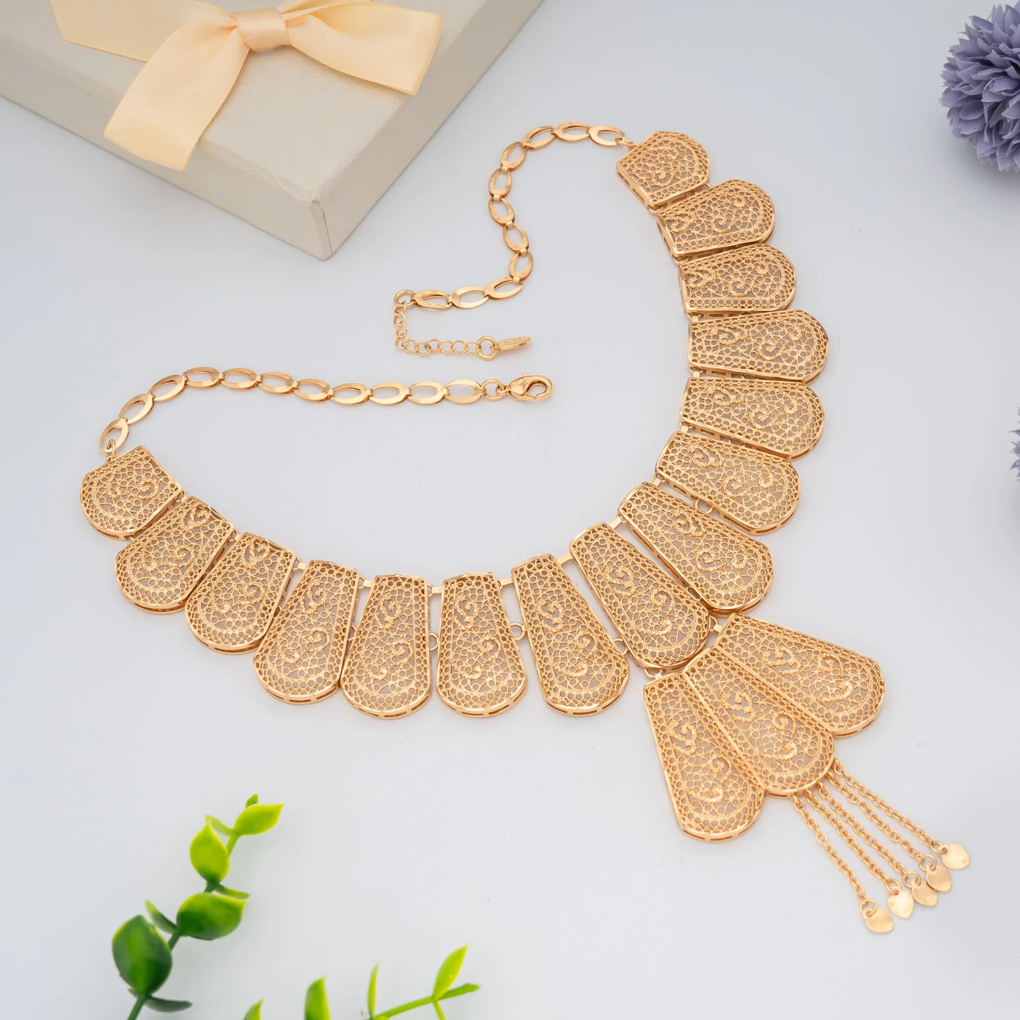 Artificial Islamic Ladies Jewelry Sets-Delicate Minimalist Necklace & Earrings Brass 18K Gold Plated for Wedding Party Occasions