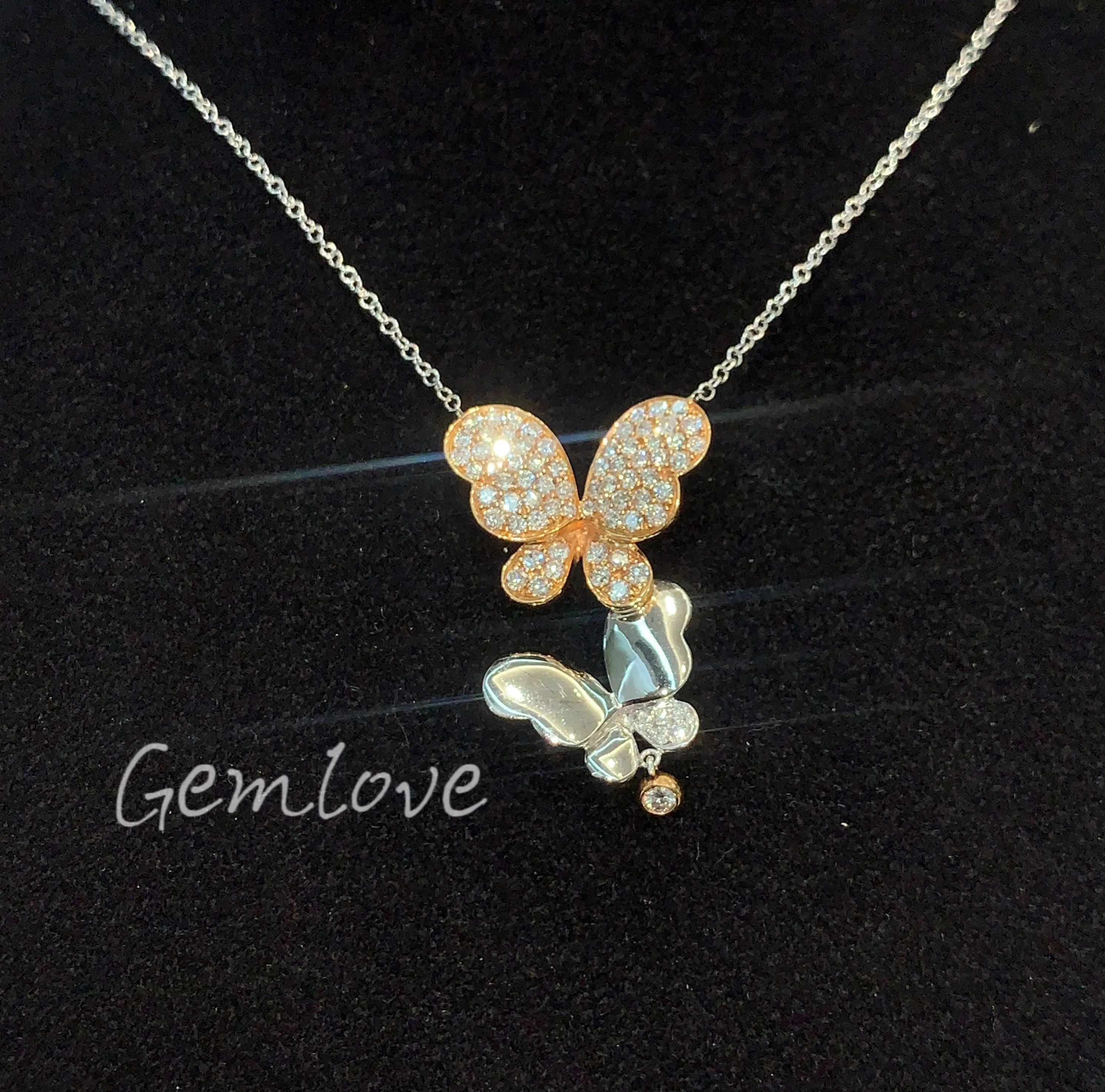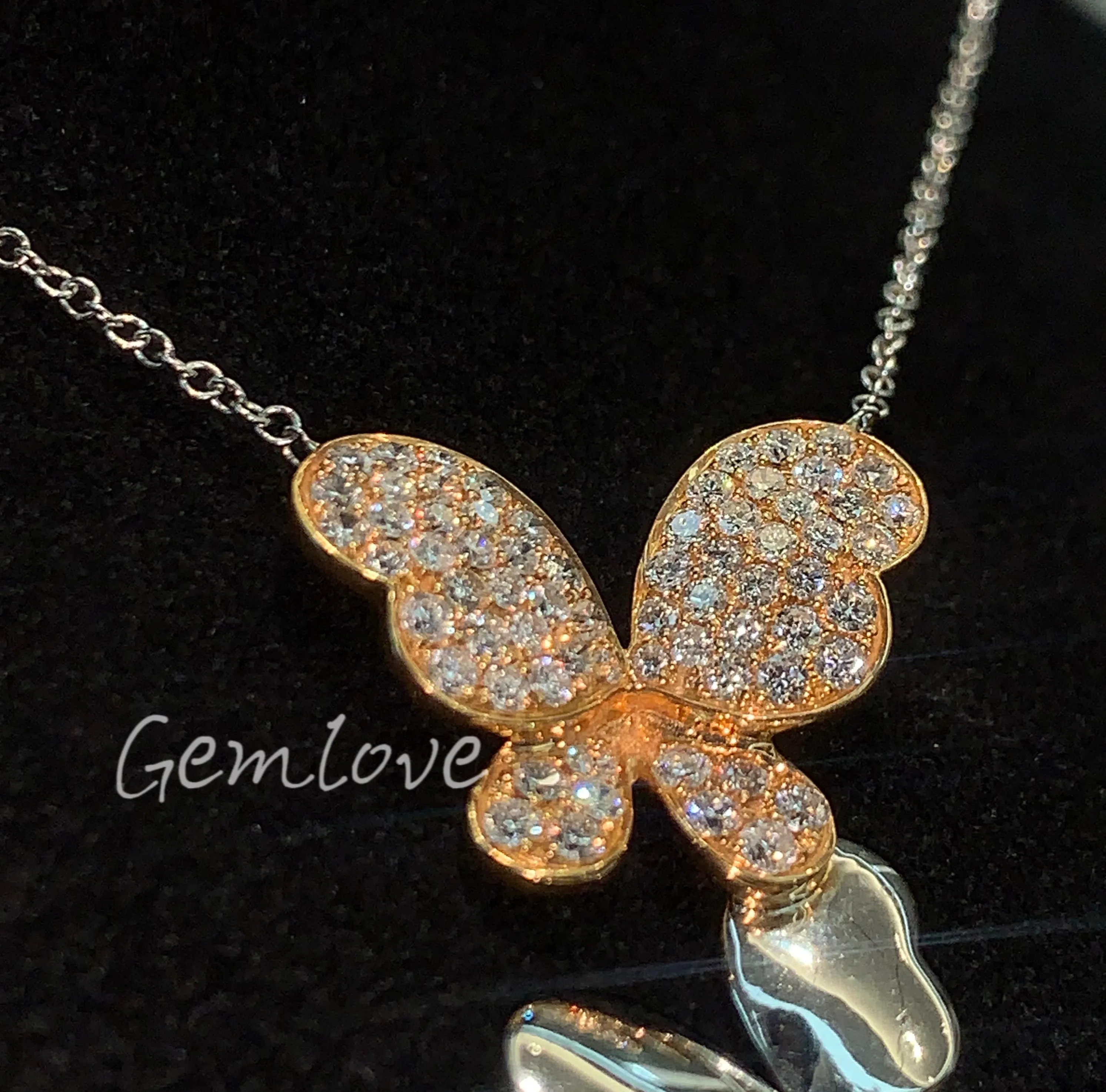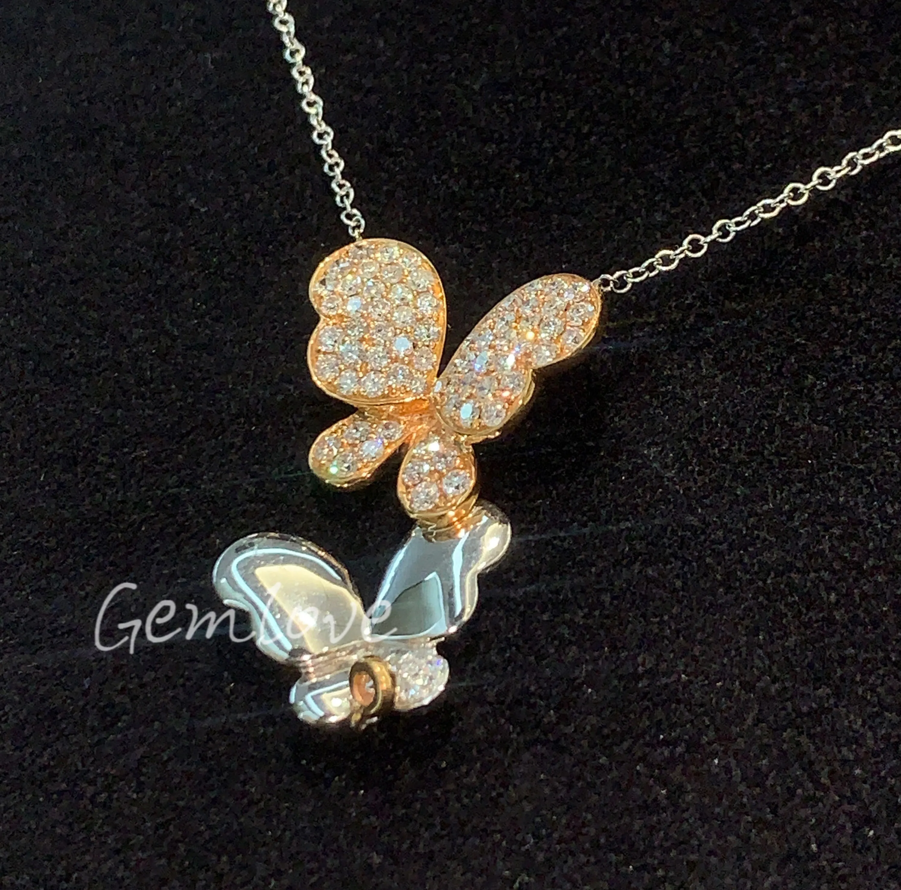 Luxurious vintage women's double butterfly design necklace IGI-certified lab-grown round-cut diamonds suitable for everyday wear