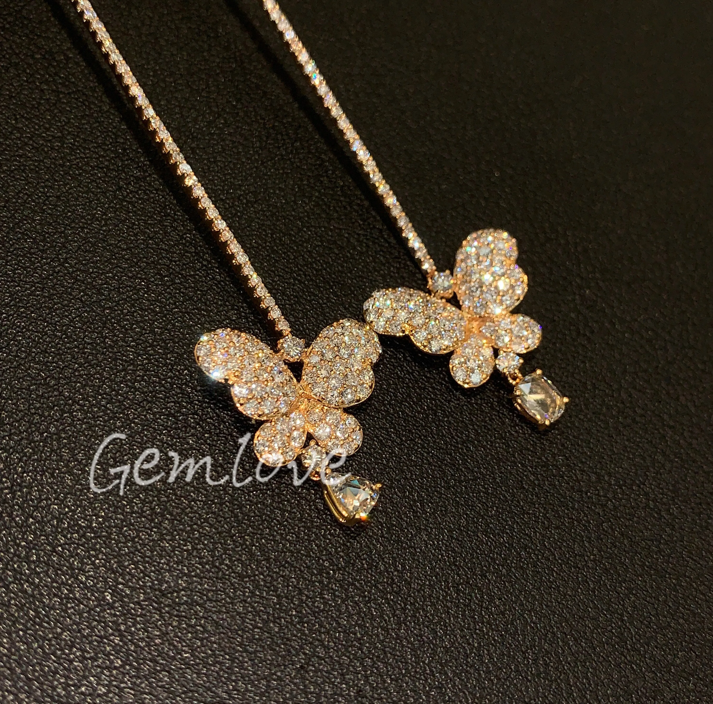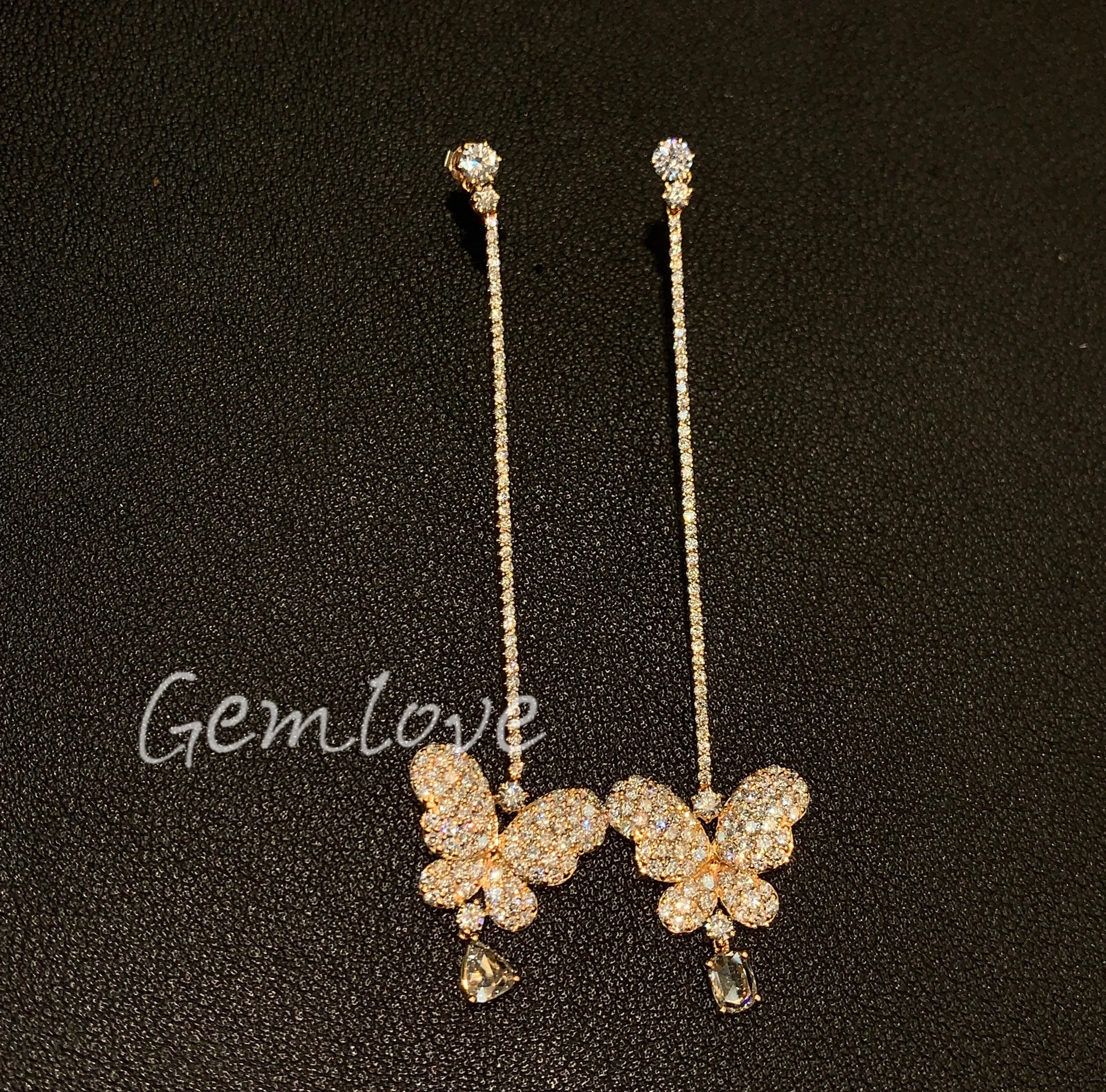 Custom 9K/10K/14K/18K Gold Butterfly Diamond Earrings for Women - IGI Certified Lab-Grown Round Cut Dangle Design