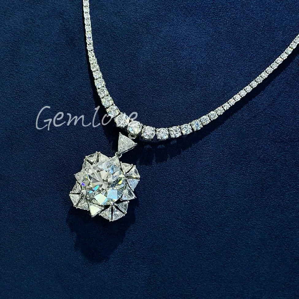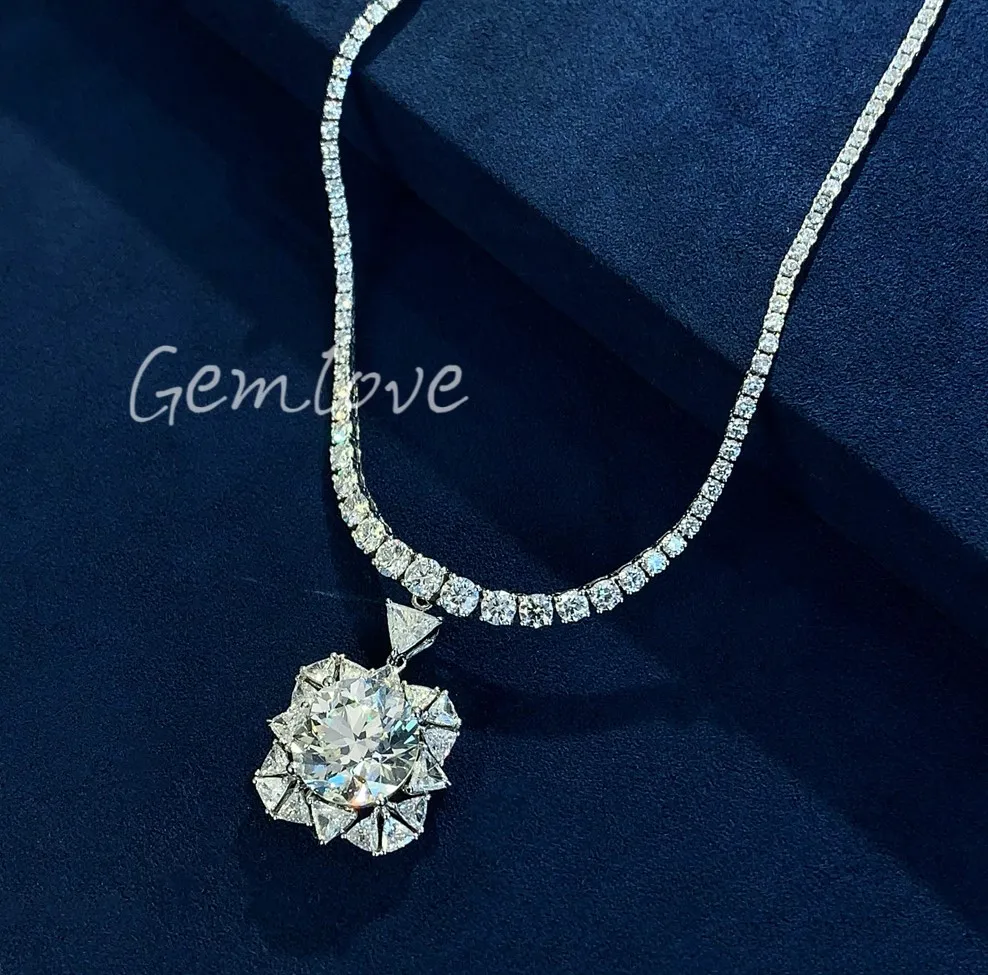 IGI-certified lab-grown diamonds, round and triangular cut, 18K gold fashion necklace for women, perfect for anniversaries