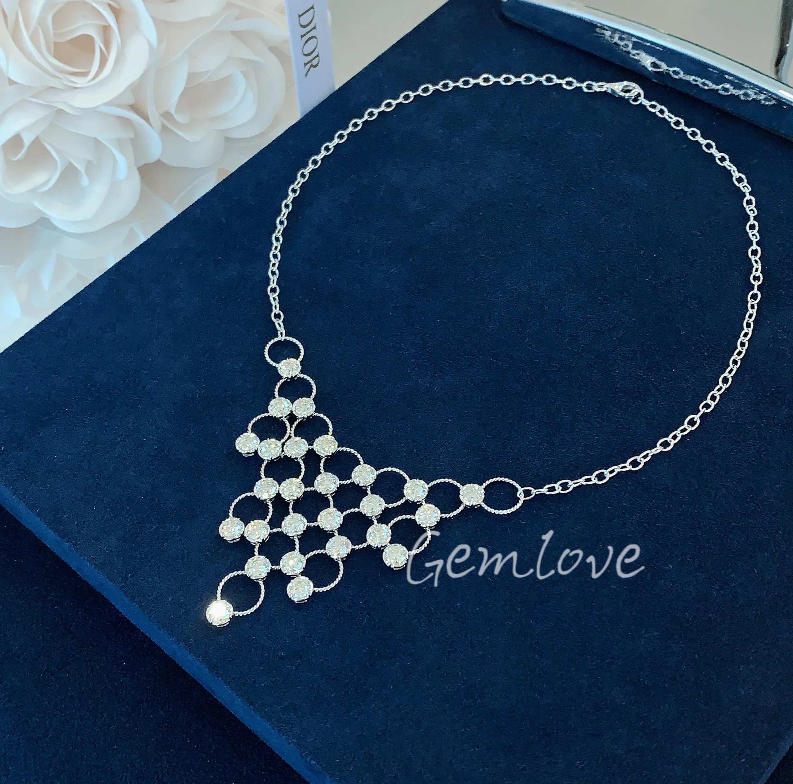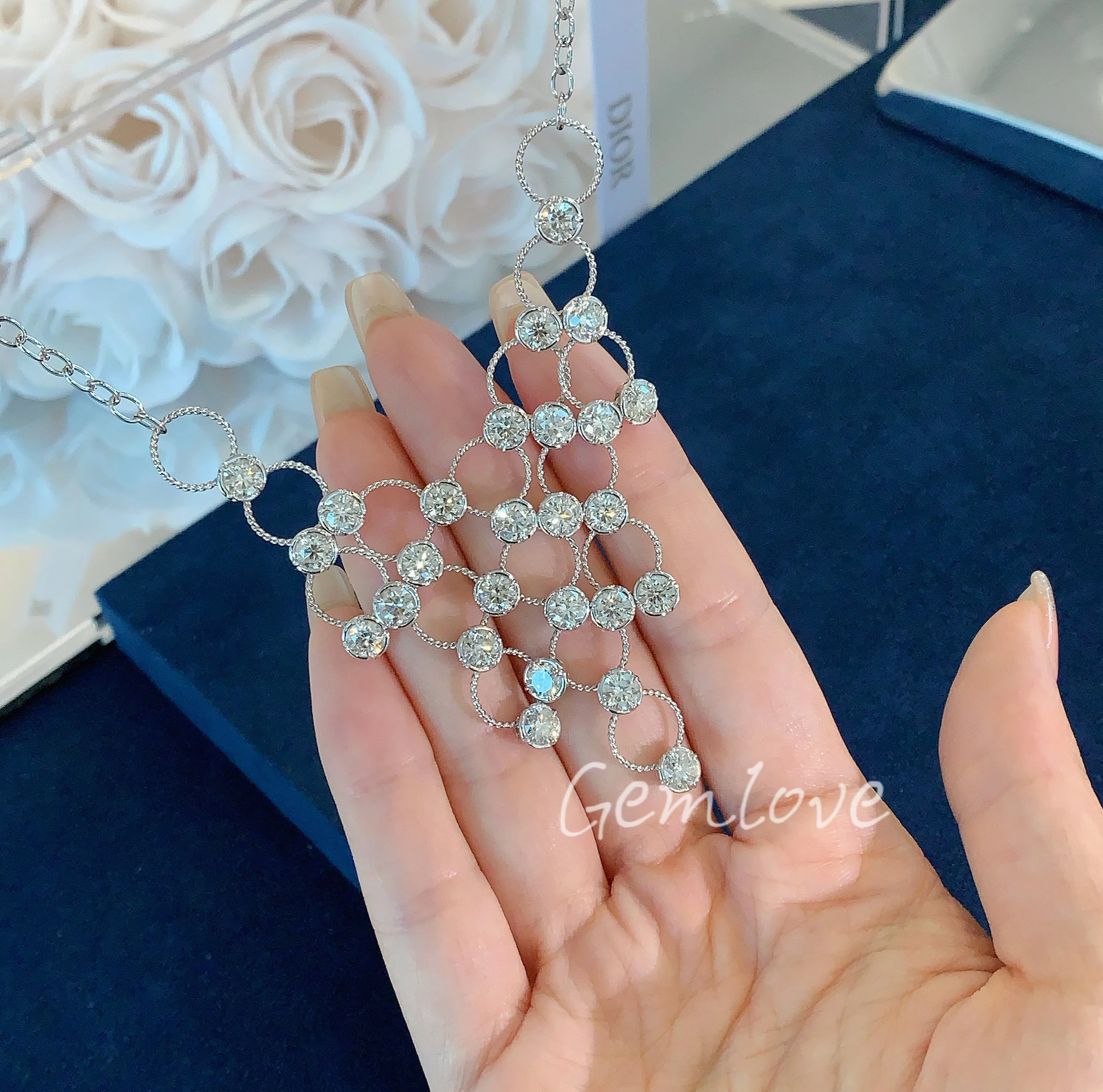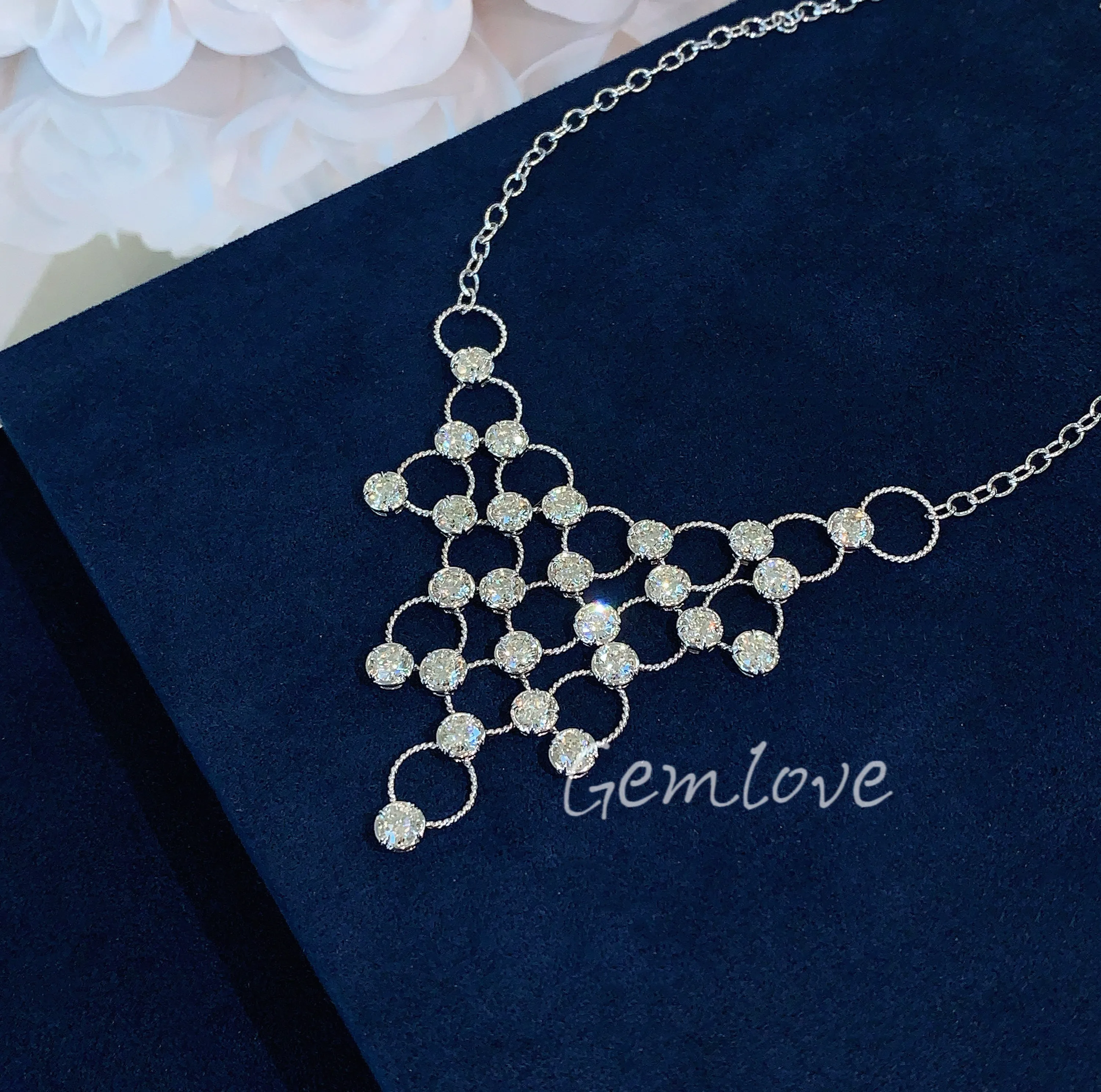 Artistic style 18K gold women's diamond necklace, featuring IGI-certified lab-grown round diamonds, perfect for parties