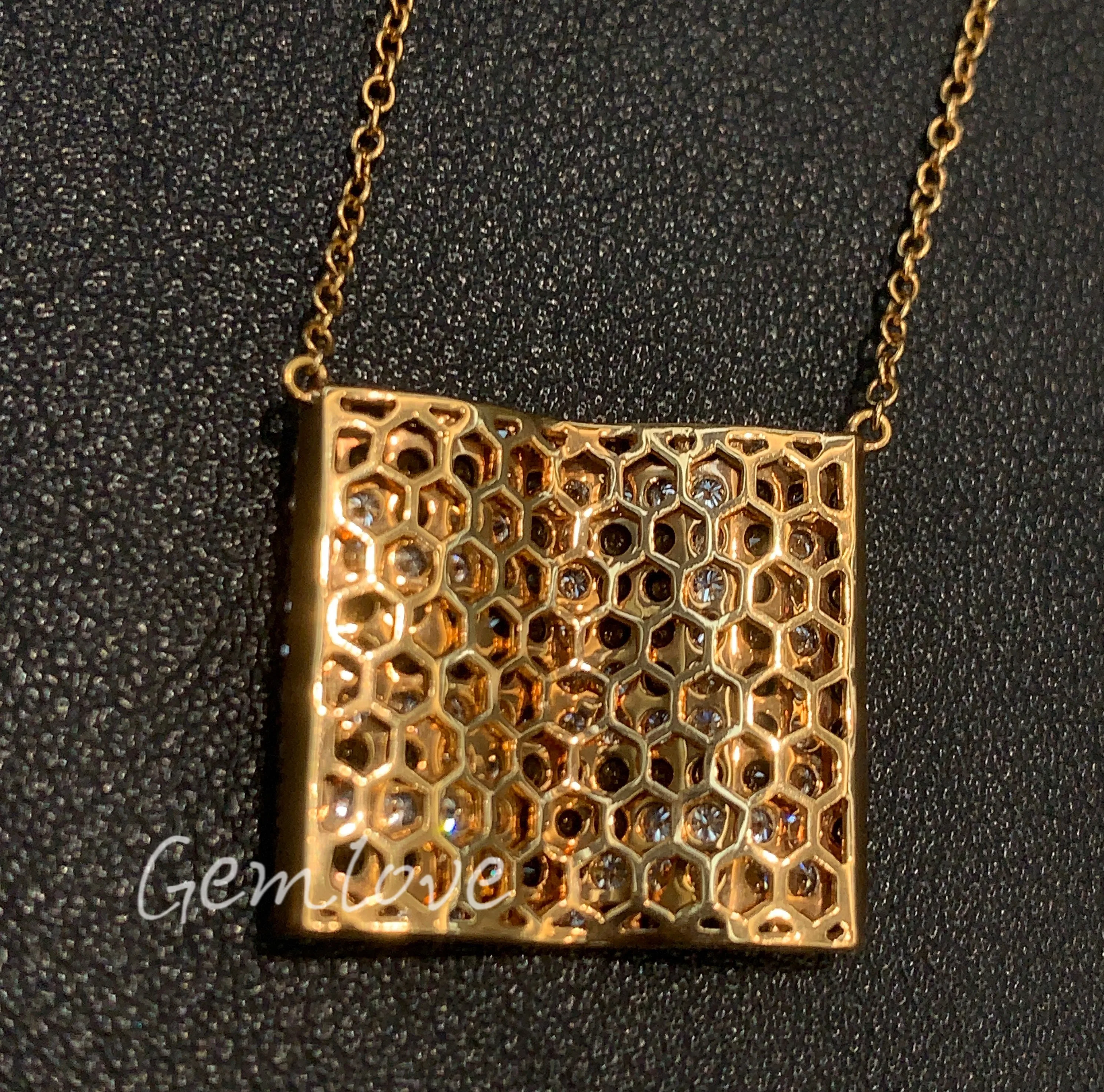 2026 New Fashionable 18K Gold Women's Square Necklace, Lab-grown Round Cut Diamond, Suitable for Party Occasions