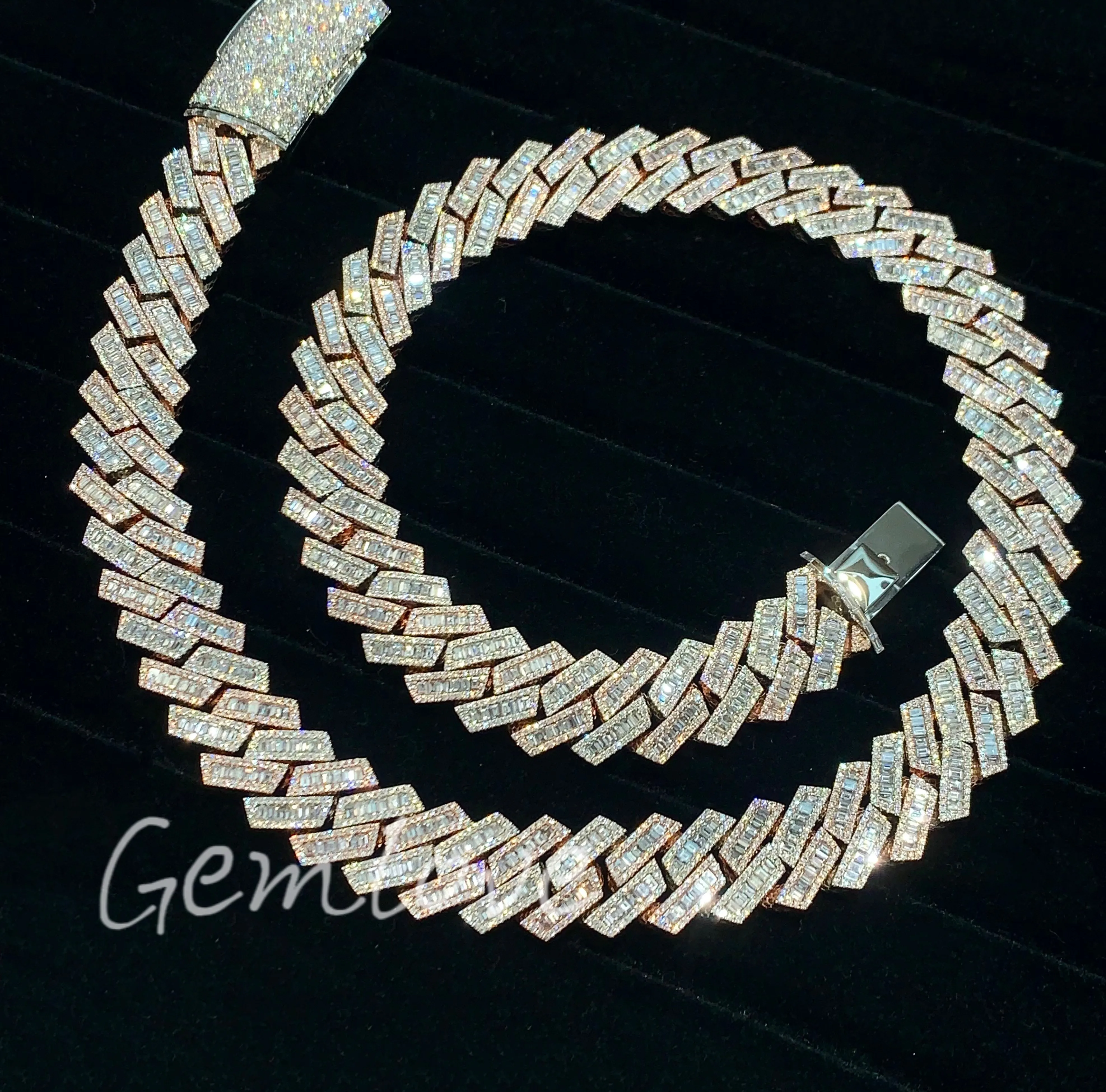 New 18K gold fashionable men's Cuban chain, IGI-certified lab-grown radiant-cut diamonds, suitable for business occasions