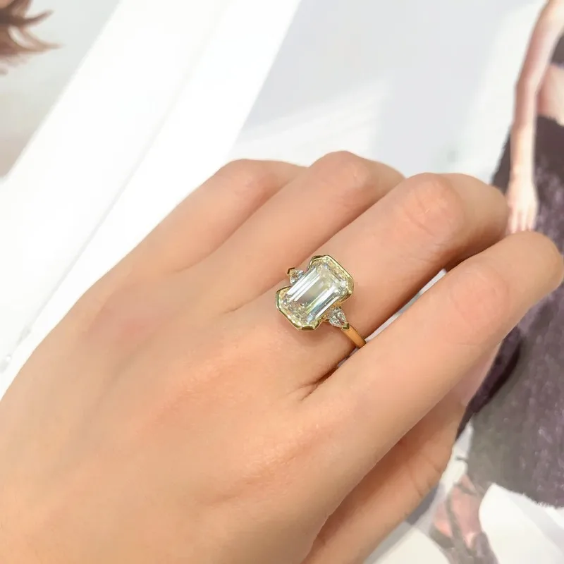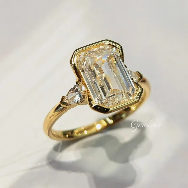 14K/18K Gold Luxury Women's Ring with 3.2CT Lab-Grown Diamond & 0.24CT Side Stones, 2.974g Wedding/Daily Jewelry